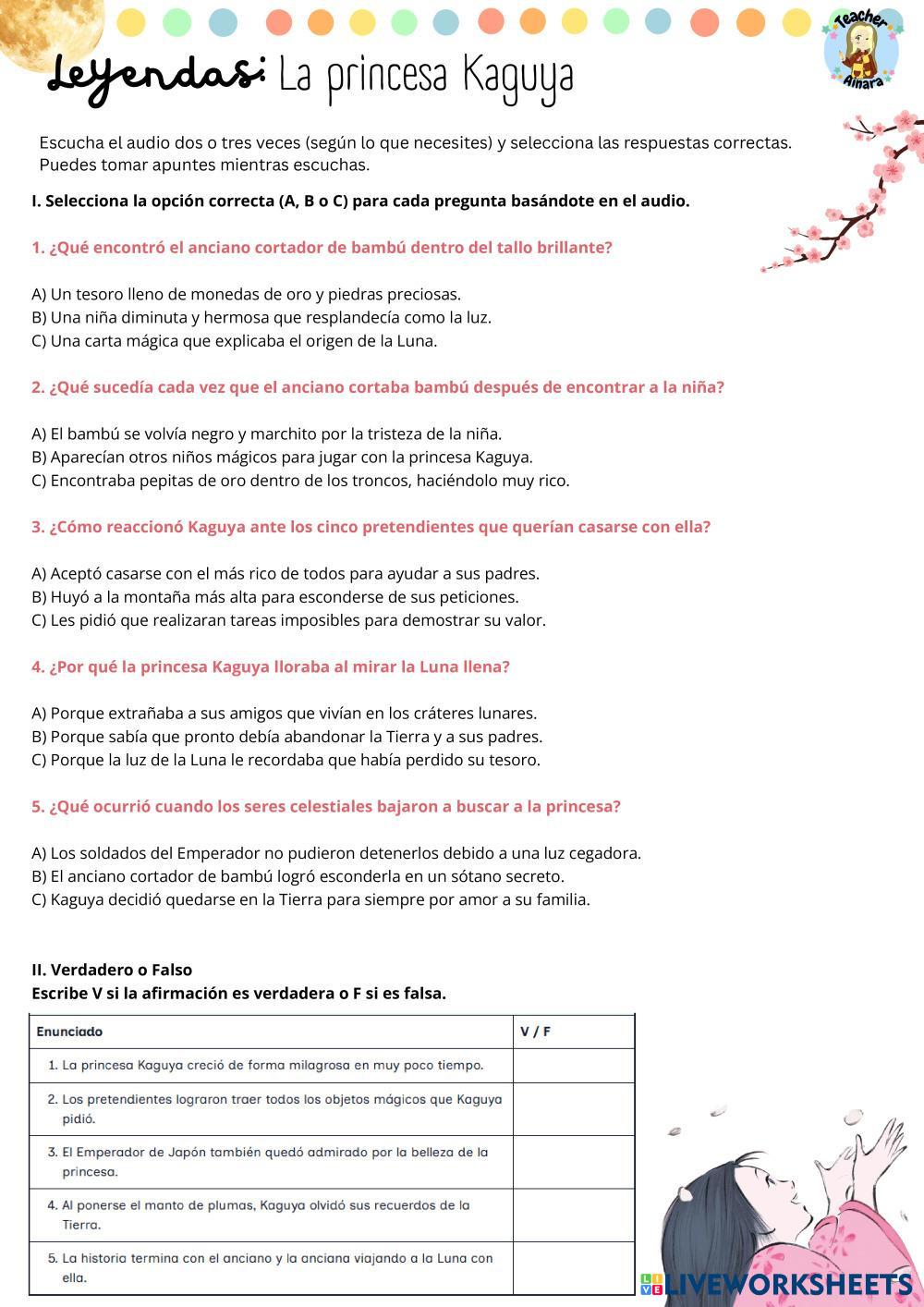 ¡Hola chiquis! Escuchad atentamente el audio de la leyenda " La princesa Kaguya" , podéis hacer anotaciones durante la escucha de cosas que consideréis relevantes.