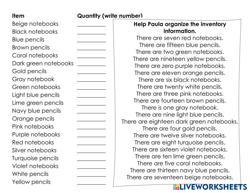 Ayuda a Paula a organizar la información del inventario y poder hacer el pedido de los elementos que le faltan.