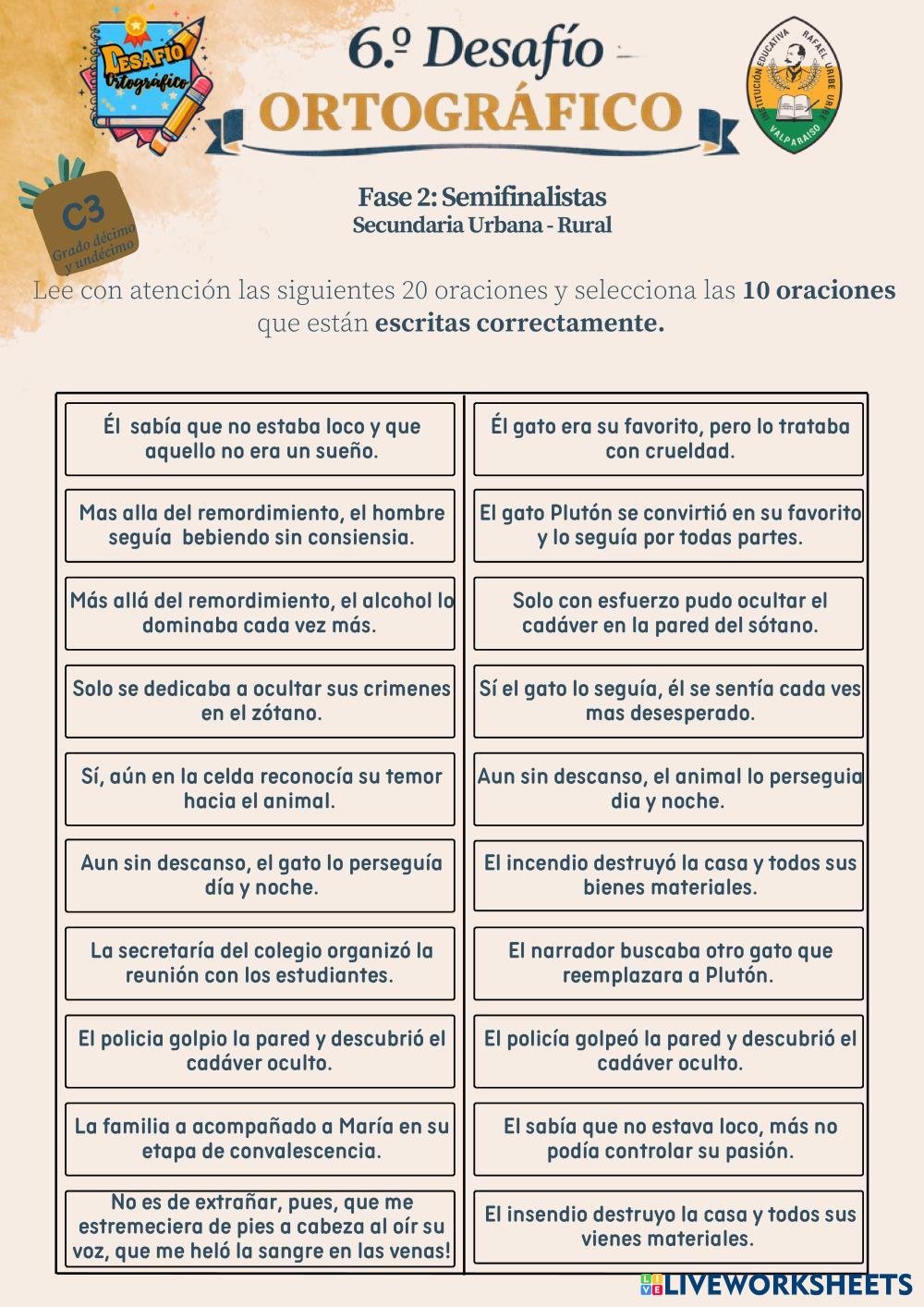 Created by yuby1024 English Language High School 12th grade Writing Spanish Author's Instructions Lee cuidadosamente las instrucciones y selecciona la opción correcta My Google Classroom Courses × 0 classes selected (0 students total) Quick Access Select all classes (0 classes) All Classes Loading courses... Cancel Share Share to selected Course __COURSE_NAME__ __STUDENT_NAME__ (__STUDENT_EMAIL__) D.O 2026 C3Secundaria Download Worksheet Validation Check my answers Emails my answers to my teacher Full name Group/level School subject Teacher's email or key code Close Submit Validating worksheet... (12) Your answers have been sent to your teacher. Good luck! OK We encountered an error submitting your answers. Please try again. OK Advertisement | Go Ad Free Created by yuby1024 English Language High School 12th grade Writing Spanish Author's Instructions Lee cuidadosamente las instrucciones y selecciona la opción correcta Explore Worksheets GRAMMAR FOR IELTS - Unit 1 English Language 12th grade GRAMMAR FOR IELTS - Unit 1 Writing - English Language aa G12 Relative Clauses - Booklet REWRITE English Language 12th grade G12 Relative Clauses - Booklet REWRITE Writing - English Language combine using the given relative pronouns B2A empower grammar test English Language 12th grade B2A empower grammar test Writing - English Language Read the instructions carefully for each part of the test Good luck =) !! LEVEL 3 UNITS 5-6 WORKSHEET English Language 12th grade LEVEL 3 UNITS 5-6 WORKSHEET Writing - English Language Read and answer the exercises
