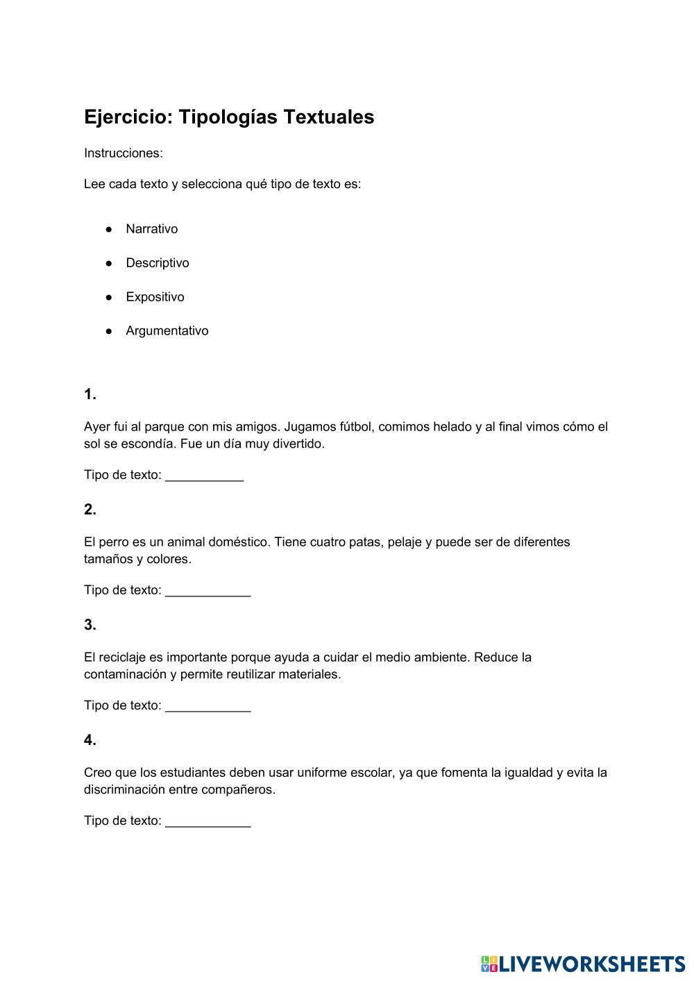 Lee y selecciona el tipo de texto correcto
