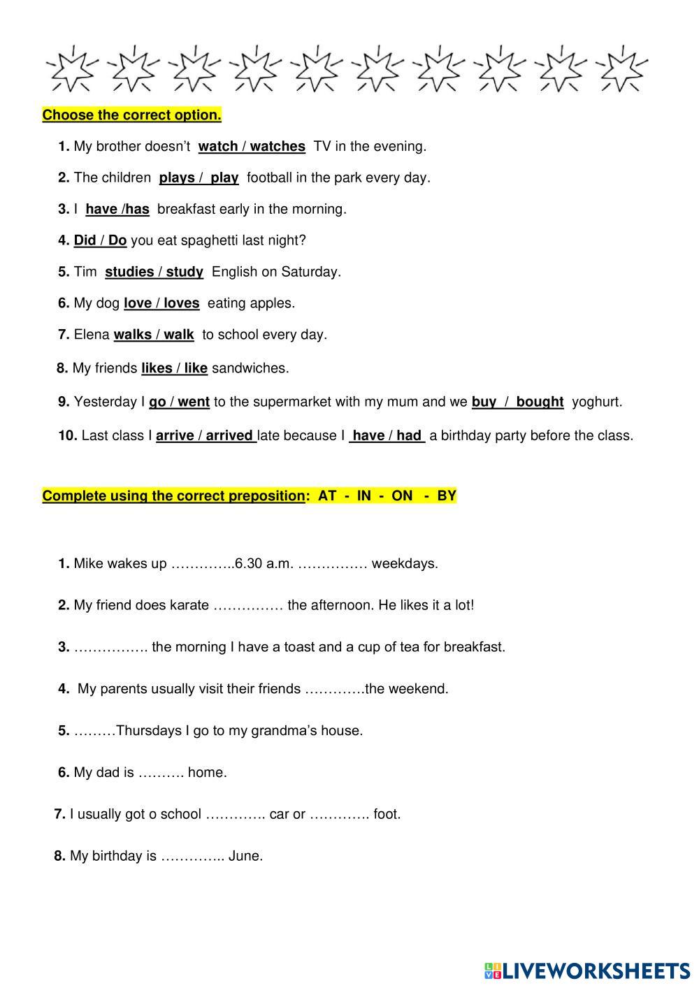 Created by KIDS5 English as a Second Language (ESL) Grammar Age 6+ level: A1 Spanish Author's Instructions Let's revise! My Google Classroom Courses × 0 classes selected (0 students total) Quick Access Select all classes (0 classes) All Classes Loading courses... Cancel Share Share to selected Course __COURSE_NAME__ __STUDENT_NAME__ (__STUDENT_EMAIL__) Revision Teens 2 Download Worksheet Validation Check my answers Emails my answers to my teacher Full name Group/level School subject Teacher's email or key code Close Submit Validating worksheet... (12) Your answers have been sent to your teacher. Good luck! OK We encountered an error submitting your answers. Please try again. OK Advertisement | Go Ad Free Created by KIDS5 English as a Second Language (ESL) Grammar Age 6+ level: A1 Spanish Author's Instructions Let's revise!