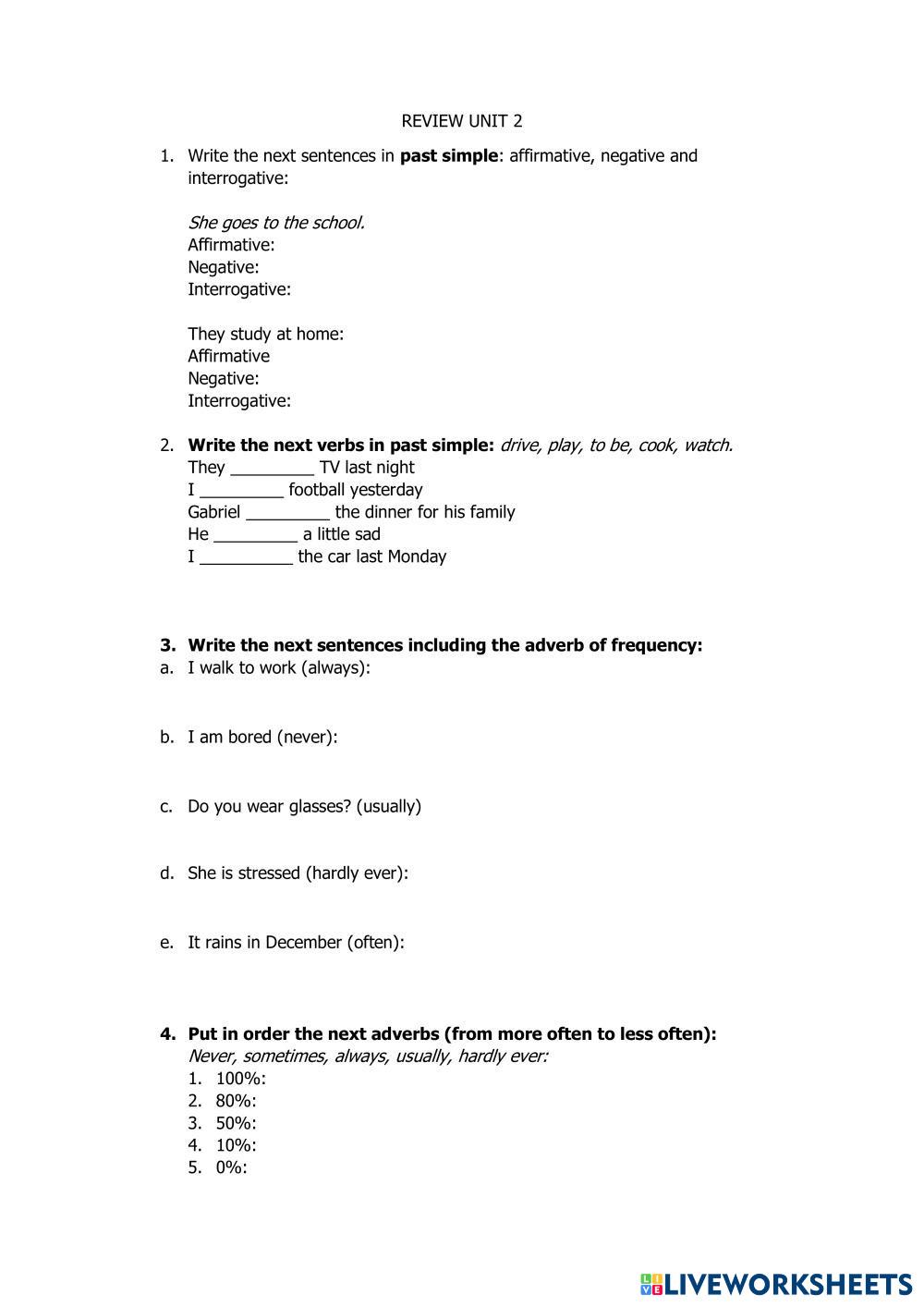 Created by MartaG English as a Second Language (ESL) Past simple Age 8-13 level: 4th grade Spanish Author's Instructions My Google Classroom Courses × 0 classes selected (0 students total) Quick Access Select all classes (0 classes) All Classes Loading courses... Cancel Share Share to selected Course __COURSE_NAME__ __STUDENT_NAME__ (__STUDENT_EMAIL__) Review unit 2 Download Worksheet Validation Check my answers Emails my answers to my teacher Full name Group/level School subject Teacher's email or key code Close Submit Validating worksheet... (12) Your answers have been sent to your teacher. Good luck! OK We encountered an error submitting your answers. Please try again. OK Advertisement | Go Ad Free Created by MartaG English as a Second Language (ESL) Past simple Age 8-13 level: 4th grade Spanish Author's Instructions