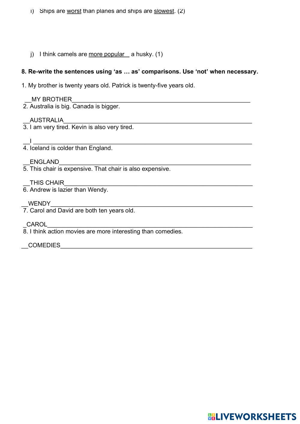 • Comparatives and superlatives