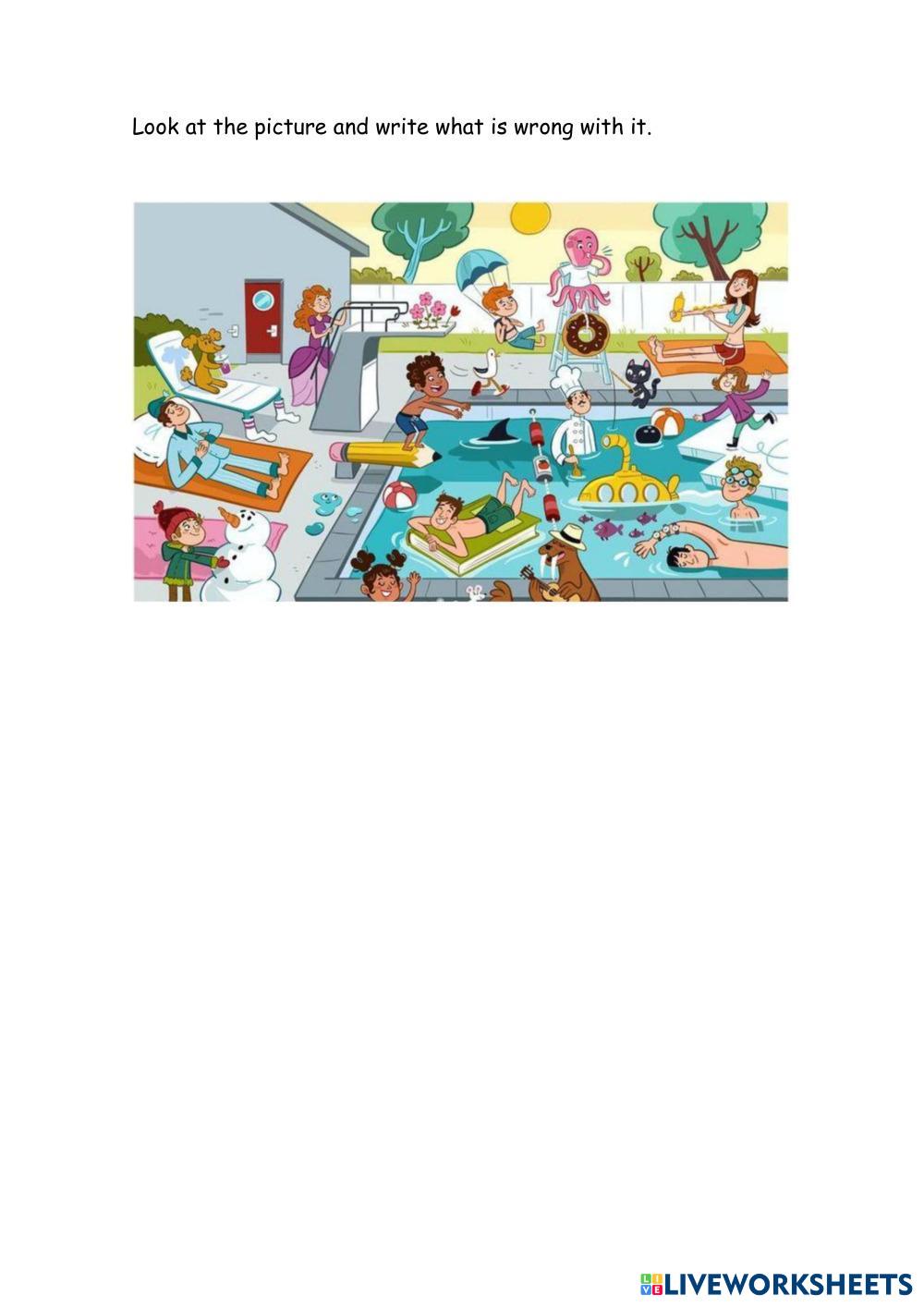 Created by melin123 English as a Second Language (ESL) writing Age 10-16 level: A2 Key for school Spanish Author's Instructions My Google Classroom Courses × 0 classes selected (0 students total) Quick Access Select all classes (0 classes) All Classes Loading courses... Cancel Share Share to selected Course __COURSE_NAME__ __STUDENT_NAME__ (__STUDENT_EMAIL__) What's wrong with the picture 1 Download Worksheet Validation Check my answers Emails my answers to my teacher Full name Group/level School subject Teacher's email or key code Close Submit Validating worksheet... (12) Your answers have been sent to your teacher. Good luck! OK We encountered an error submitting your answers. Please try again. OK Advertisement | Go Ad Free Created by melin123 English as a Second Language (ESL) writing Age 10-16 level: A2 Key for school Spanish Author's Instructions