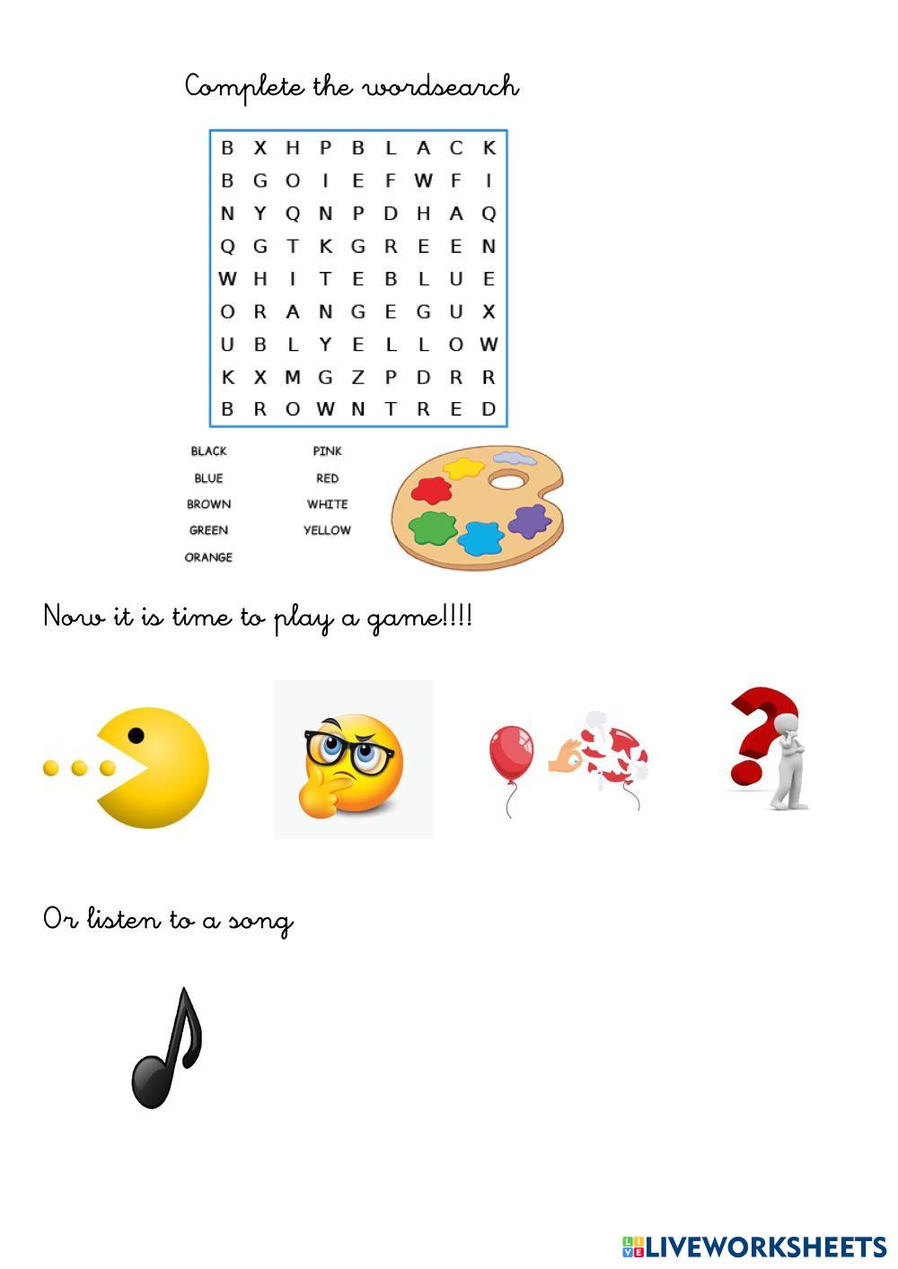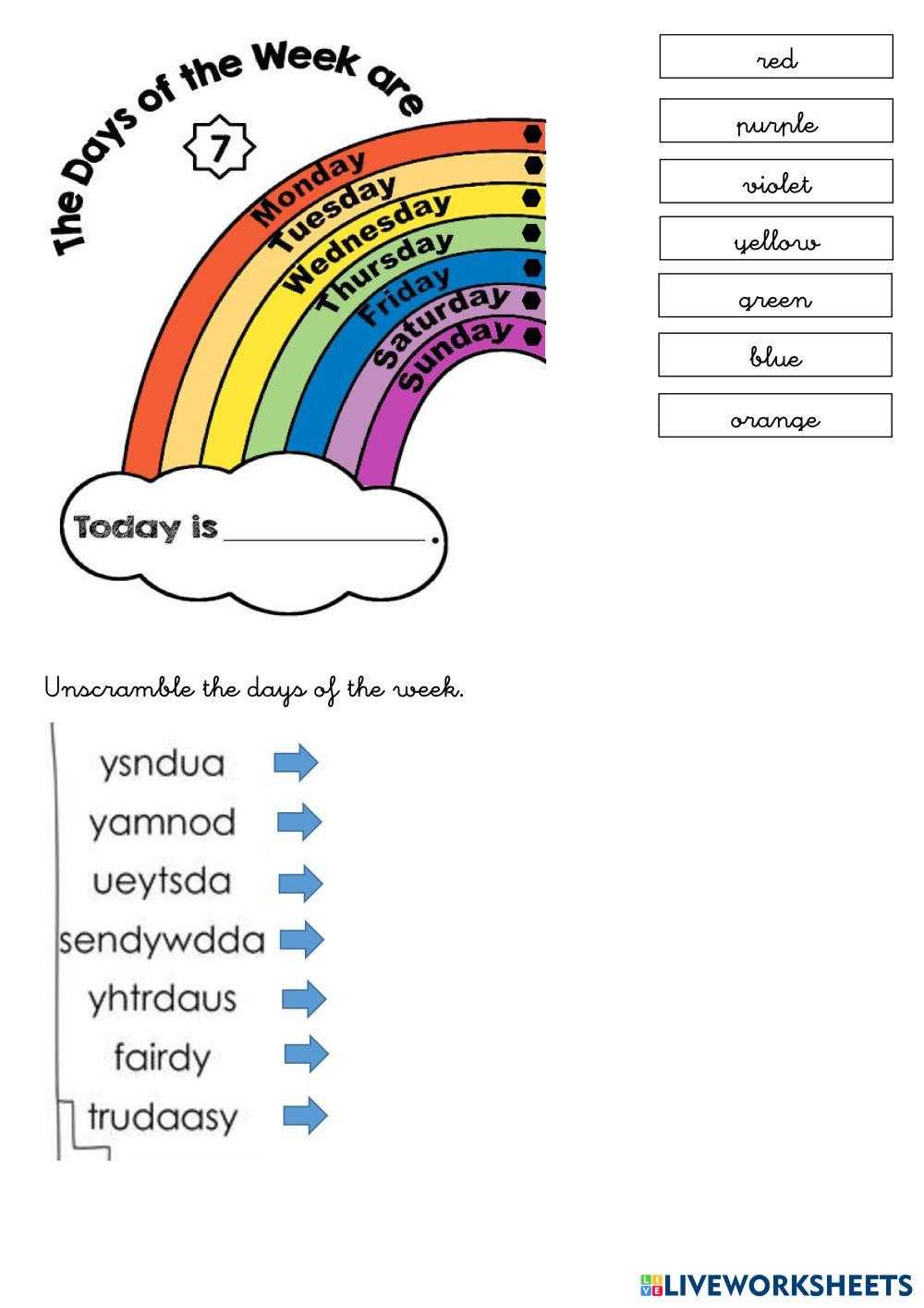 Created by pabloalamo english colors Age 6 level: Segundo Spanish Author's Instructions My Google Classroom Courses × 0 classes selected (0 students total) Quick Access Select all classes (0 classes) All Classes Loading courses... Cancel Share Share to selected Course __COURSE_NAME__ __STUDENT_NAME__ (__STUDENT_EMAIL__) Colors and Days of the week Download Worksheet Validation Check my answers Emails my answers to my teacher Full name Group/level School subject Teacher's email or key code Close Submit Validating worksheet... (12) Your answers have been sent to your teacher. Good luck! OK We encountered an error submitting your answers. Please try again. OK Advertisement | Go Ad Free Created by pabloalamo english colors Age 6 level: Segundo Spanish Author's Instructions