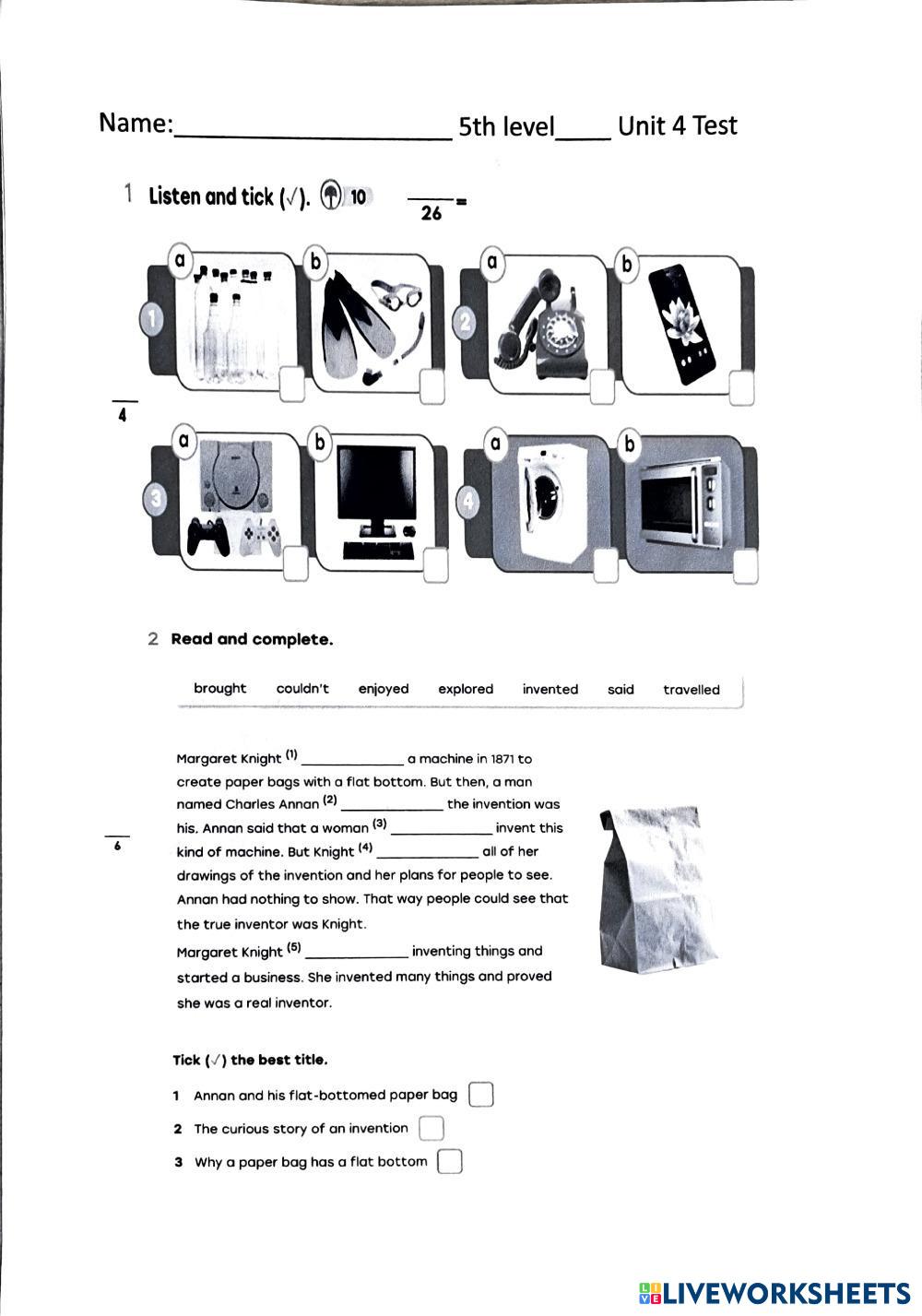 Created byLola English Could/couldn't Age 10-15 level: 5th grade Spanish Author's Instructions My Google Classroom Courses × 0 classes selected (0 students total) Quick Access Select all classes (0 classes) All Classes Loading courses... Cancel Share Share to selected Course __COURSE_NAME__ __STUDENT_NAME__ (__STUDENT_EMAIL__) English test Unit 4 Download Worksheet Validation Check my answers Emails my answers to my teacher Full name Group/level School subject Teacher's email or key code Close Submit Validating worksheet... (12) Your answers have been sent to your teacher. Good luck! OK We encountered an error submitting your answers. Please try again. OK Advertisement | Go Ad Free Created byLola English Could/couldn't Age 10-15 level: 5th grade Spanish Author's Instructions