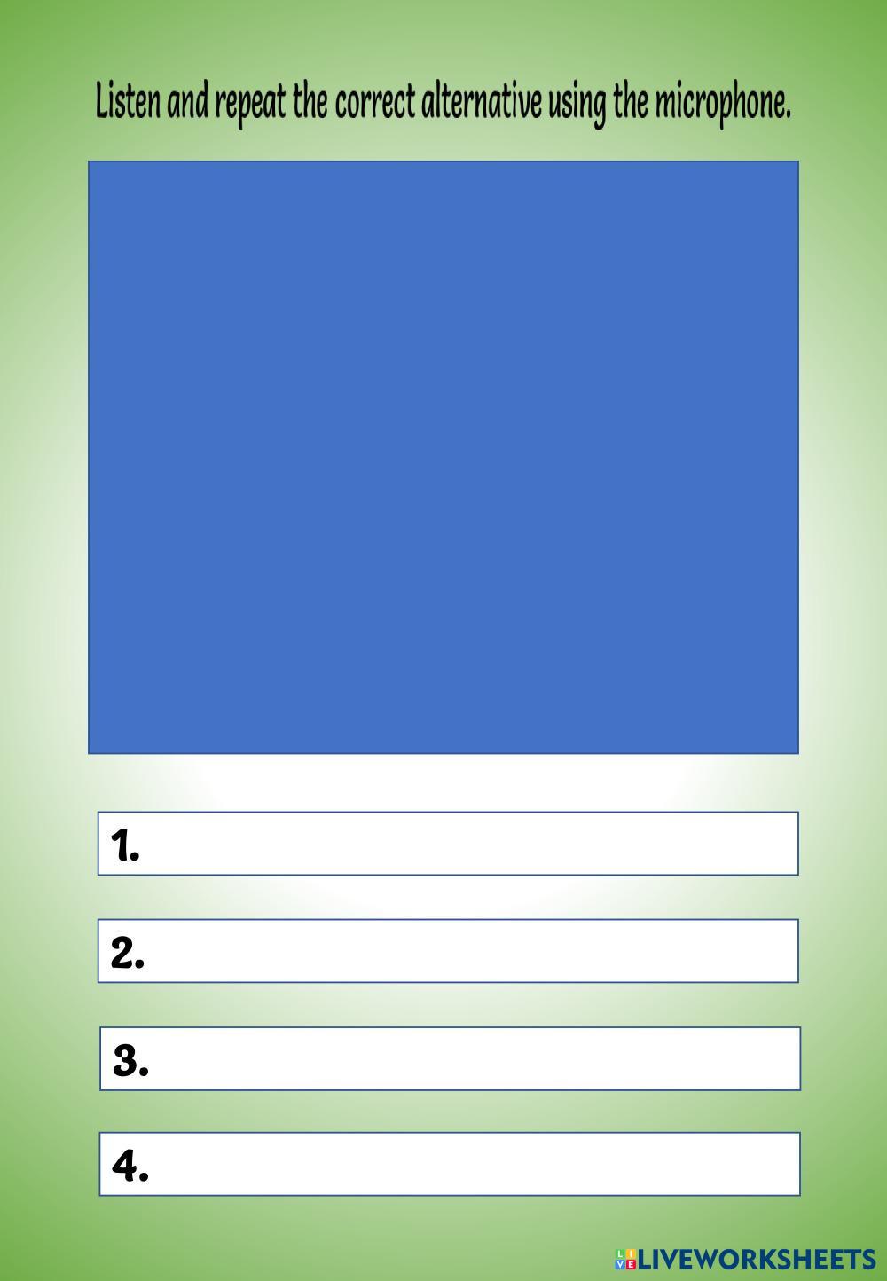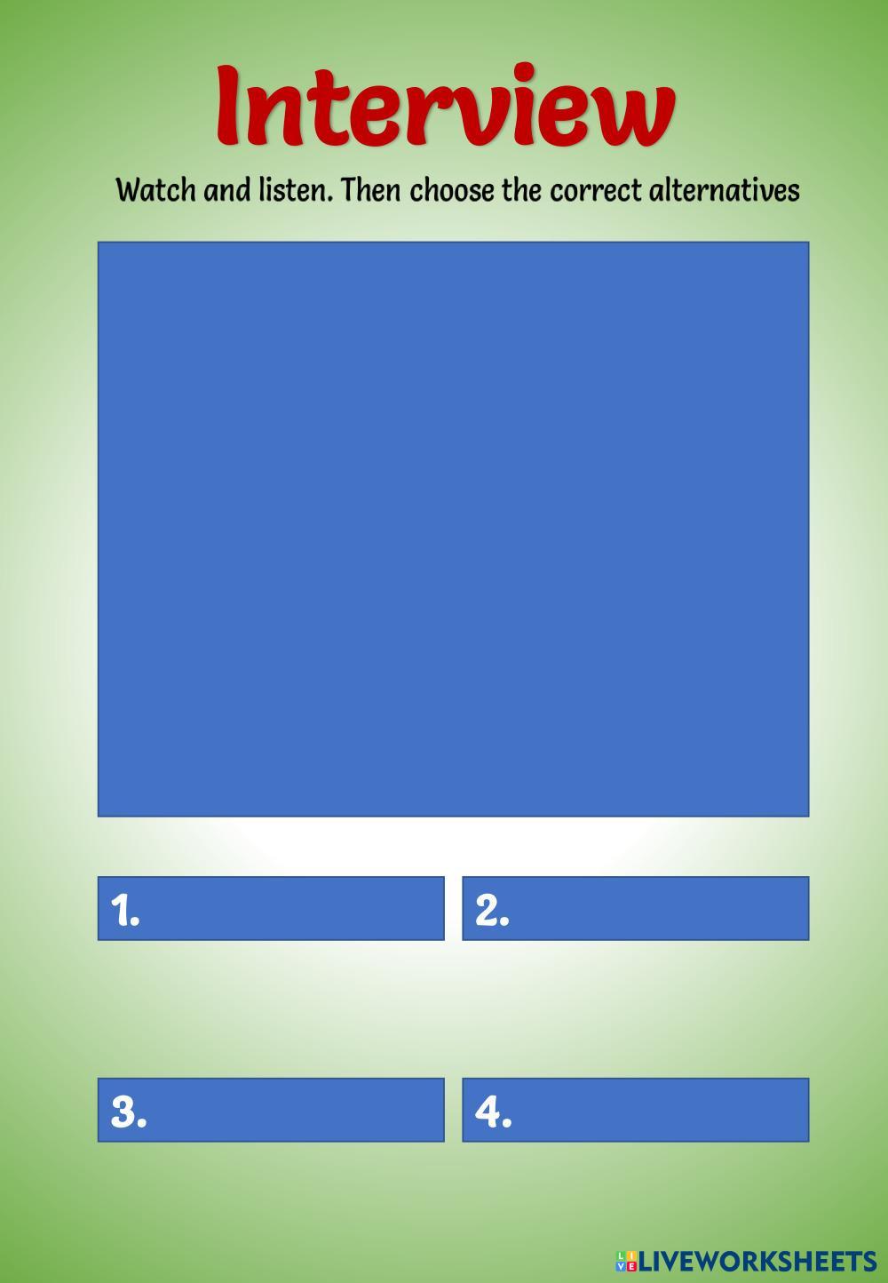 Created by englishshot ENGLISH None Age 18+ level: adults Spanish Author's Instructions none My Google Classroom Courses × 0 classes selected (0 students total) Quick Access Select all classes (0 classes) All Classes Loading courses... Cancel Share Share to selected Course __COURSE_NAME__ __STUDENT_NAME__ (__STUDENT_EMAIL__) GGE_BS_LESSON 2_INTERVIEW Download Worksheet Validation Check my answers Emails my answers to my teacher Full name Group/level School subject Teacher's email or key code Close Submit Validating worksheet... (12) Your answers have been sent to your teacher. Good luck! OK We encountered an error submitting your answers. Please try again. OK Advertisement | Go Ad Free Created by englishshot ENGLISH None Age 18+ level: adults Spanish Author's Instructions none
