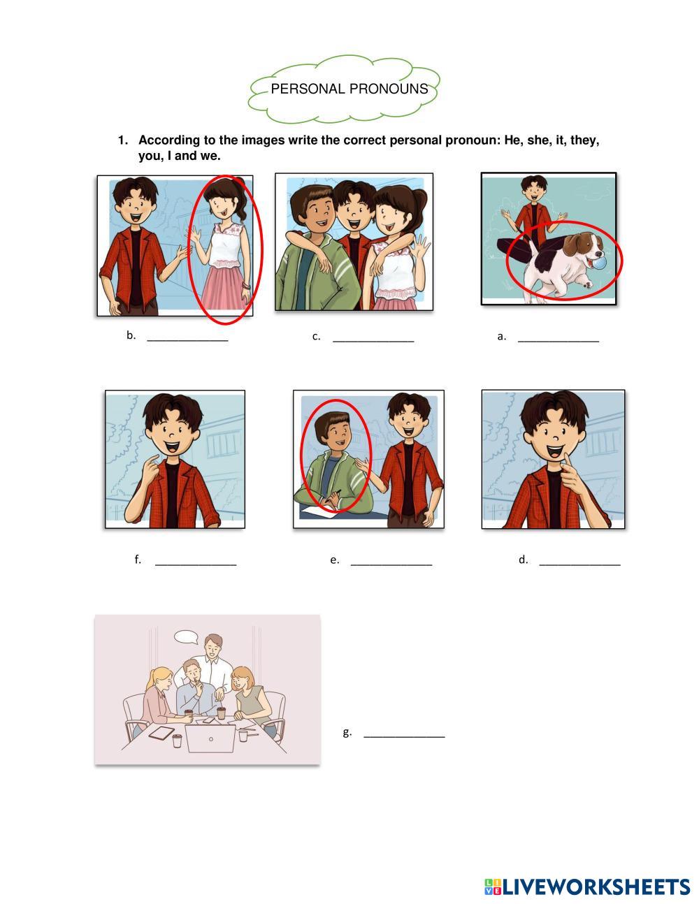 Created byIvana Ávila English Grammar Age 15+ level: A1 Spanish Author's Instructions My Google Classroom Courses × 0 classes selected (0 students total) Quick Access Select all classes (0 classes) All Classes Loading courses... Cancel Share Share to selected Course __COURSE_NAME__ __STUDENT_NAME__ (__STUDENT_EMAIL__) Personal Pronouns II Download Worksheet Validation Check my answers Emails my answers to my teacher Full name Group/level School subject Teacher's email or key code Close Submit Validating worksheet... (12) Your answers have been sent to your teacher. Good luck! OK We encountered an error submitting your answers. Please try again. OK Advertisement | Go Ad Free Created byIvana Ávila English Grammar Age 15+ level: A1 Spanish Author's Instructions