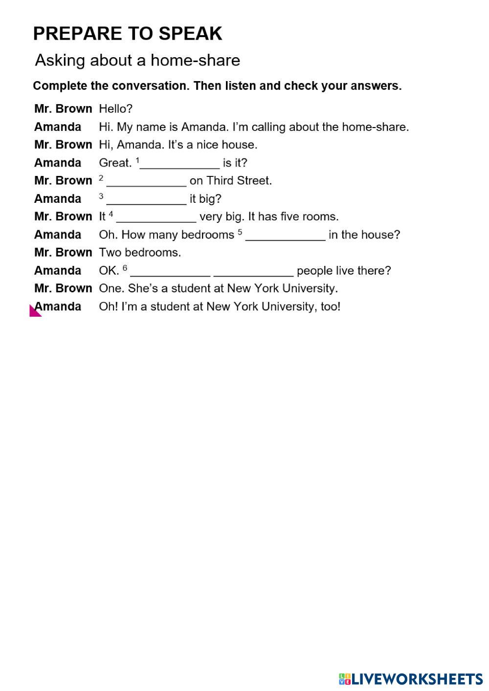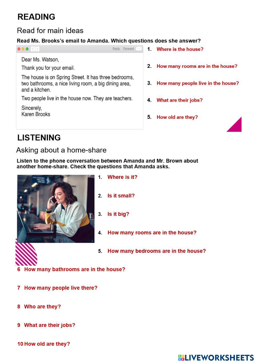 Created by Lizes English Reading and Listening Age 18+ level: A1 Spanish Author's Instructions My Google Classroom Courses × 0 classes selected (0 students total) Quick Access Select all classes (0 classes) All Classes Loading courses... Cancel Share Share to selected Course __COURSE_NAME__ __STUDENT_NAME__ (__STUDENT_EMAIL__) Lesson 4 - Unit 3 - E1 Download Worksheet Validation Check my answers Emails my answers to my teacher Full name Group/level School subject Teacher's email or key code Close Submit Validating worksheet... (12) Your answers have been sent to your teacher. Good luck! OK We encountered an error submitting your answers. Please try again. OK Advertisement | Go Ad Free Created by Lizes English Reading and Listening Age 18+ level: A1 Spanish Author's Instructions