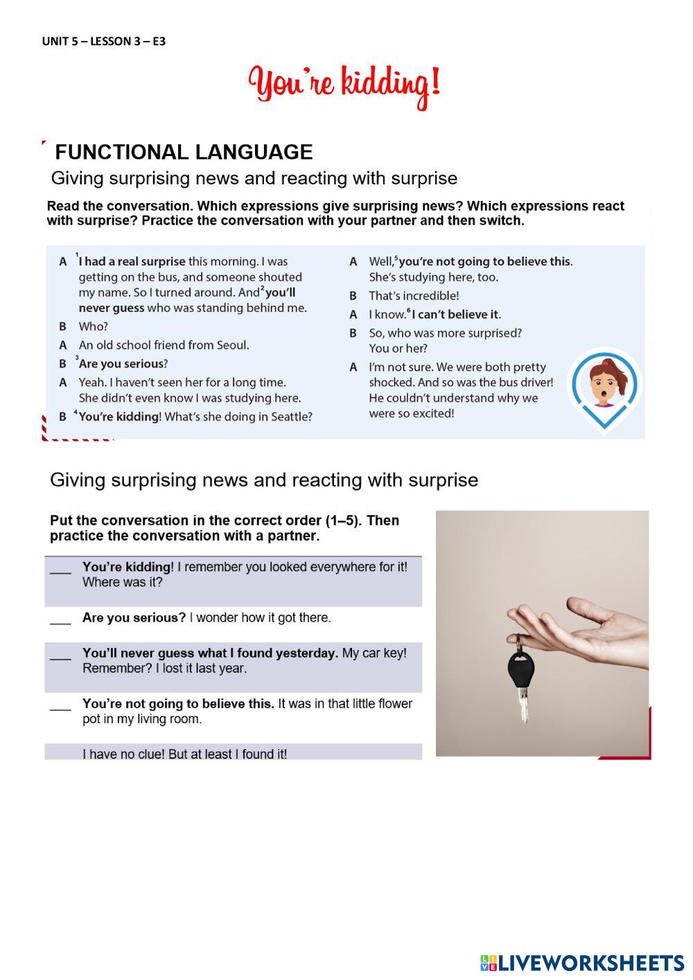 Created by Lizes English While & When Age 18+ level: A1 Spanish Author's Instructions My Google Classroom Courses × 0 classes selected (0 students total) Quick Access Select all classes (0 classes) All Classes Loading courses... Cancel Share Share to selected Course __COURSE_NAME__ __STUDENT_NAME__ (__STUDENT_EMAIL__) Lesson 3 - Unit 5 - E3 Download Worksheet Validation Check my answers Emails my answers to my teacher Full name Group/level School subject Teacher's email or key code Close Submit Validating worksheet... (12) Your answers have been sent to your teacher. Good luck! OK We encountered an error submitting your answers. Please try again. OK Advertisement | Go Ad Free Created by Lizes English While & When Age 18+ level: A1 Spanish Author's Instructions