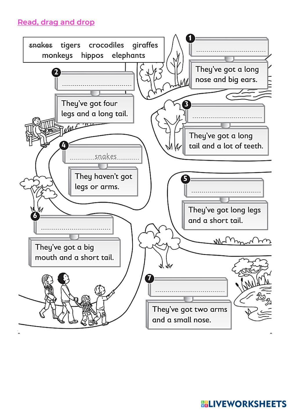 Created by paularoy ESL English A1-Beginner Grammar Spanish Author's Instructions wild animals grammar have got My Google Classroom Courses × 0 classes selected (0 students total) Quick Access Select all classes (0 classes) All Classes Loading courses... Cancel Share Share to selected Course __COURSE_NAME__ __STUDENT_NAME__ (__STUDENT_EMAIL__) U7 - wild animals - have got Download Worksheet Validation Check my answers Emails my answers to my teacher Full name Group/level School subject Teacher's email or key code Close Submit Validating worksheet... (12) Your answers have been sent to your teacher. Good luck! OK We encountered an error submitting your answers. Please try again. OK Advertisement | Go Ad Free Created by paularoy ESL English A1-Beginner Grammar Spanish Author's Instructions wild animals grammar have got Explore Worksheets BR A1 U10 Vocabulary + superlatives + how to respond to news ESL A1-Beginner BR A1 U10 Vocabulary + superlatives + how to respond to news Grammar - ESL Complete the activity U10 - listen and correct ESL A1-Beginner U10 - listen and correct Grammar - ESL Present continuous Listen and correct Was or were ESL A1-Beginner Was or were Grammar - ESL English as a second language positive, negative, questions Main content: Past simple Other contents: verb to be VERB TO BE ESL A1-Beginner VERB TO BE Grammar - ESL PRACTICE THE VERB TO BE IN AFFIRMATIVE AND NEGATIVE FORM ISN'T, AREN'T