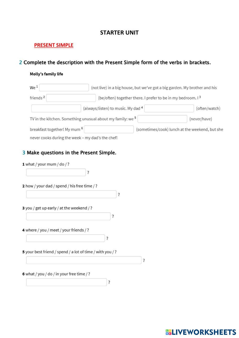 Created by benetash1306 ESL Spanish B1 Grammar Spanish Author's Instructions Escribe al respuesta correcta My Google Classroom Courses × 0 classes selected (0 students total) Quick Access Select all classes (0 classes) All Classes Loading courses... Cancel Share Share to selected Course __COURSE_NAME__ __STUDENT_NAME__ (__STUDENT_EMAIL__) PRESENT SIMPLE Download Worksheet Validation Check my answers Emails my answers to my teacher Full name Group/level School subject Teacher's email or key code Close Submit Validating worksheet... (12) Your answers have been sent to your teacher. Good luck! OK We encountered an error submitting your answers. Please try again. OK Advertisement | Go Ad Free Created by benetash1306 ESL Spanish B1 Grammar Spanish Author's Instructions Escribe al respuesta correcta Explore Worksheets grados del adjetivo para comparar ESL B1 grados del adjetivo para comparar Grammar - ESL . . . . . .. . . . . . .. .. . . . . . Completar el verbo (PARA y PARA QUE) ESL B1 Completar el verbo (PARA y PARA QUE) Grammar - ESL Completa con el tiempo verbal correspondiente: presente de indicativo, presente de subjuntivo o imperfecto de subjuntivo Completar el verbo (PARA y PARA QUE) ESL B1 Completar el verbo (PARA y PARA QUE) Grammar - ESL Completa con el tiempo verbal correspondiente: presente de indicativo, presente de subjuntivo o imperfecto de subjuntivo Modals of speculation and deduction ESL B1 Modals of speculation and deduction Grammar - ESL A ws to practice modals of deduction and speculation, present, past and future.