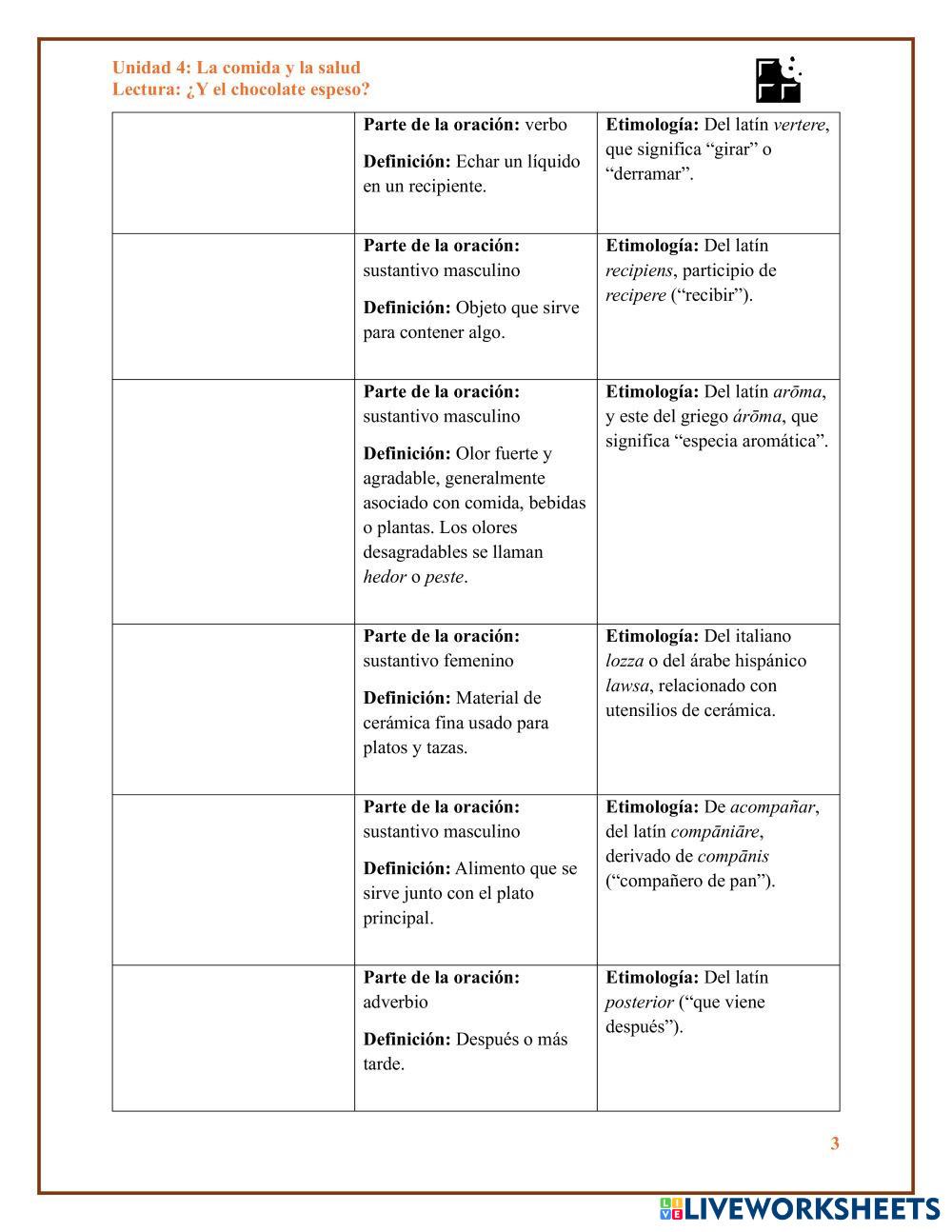 Created by abelardocampos ESL Spanish C1 Reading Spanish Author's Instructions Unidad 4 ¿Y el chocolate espeso? Vocabulario y etimología My Google Classroom Courses × 0 classes selected (0 students total) Quick Access Select all classes (0 classes) All Classes Loading courses... Cancel Share Share to selected Course __COURSE_NAME__ __STUDENT_NAME__ (__STUDENT_EMAIL__) Unidad 4 ¿Y el chocolate espeso? Vocabulario y etimología Download Worksheet Validation Check my answers Emails my answers to my teacher Full name Group/level School subject Teacher's email or key code Close Submit Validating worksheet... (12) Your answers have been sent to your teacher. Good luck! OK We encountered an error submitting your answers. Please try again. OK Advertisement | Go Ad Free Created by abelardocampos ESL Spanish C1 Reading Spanish Author's Instructions Unidad 4 ¿Y el chocolate espeso? Vocabulario y etimología Explore Worksheets El día de San Patricio ESL C1 El día de San Patricio Reading - ESL Lee y selecciona Observa los personajes y arrastra las descripciones al sitio correcto. ESL C1 Observa los personajes y arrastra las descripciones al sitio correcto. Reading - ESL Observa los personajes y arrastra las descripciones al sitio correcto. La pascua -Lee y selecciona la respuesta correcta ESL C1 La pascua -Lee y selecciona la respuesta correcta Reading - ESL Lee y selecciona la respuesta correcta La pascua-lectura comprensiva ESL C1 La pascua-lectura comprensiva Reading - ESL Lee la lectura comprensiva y contesta