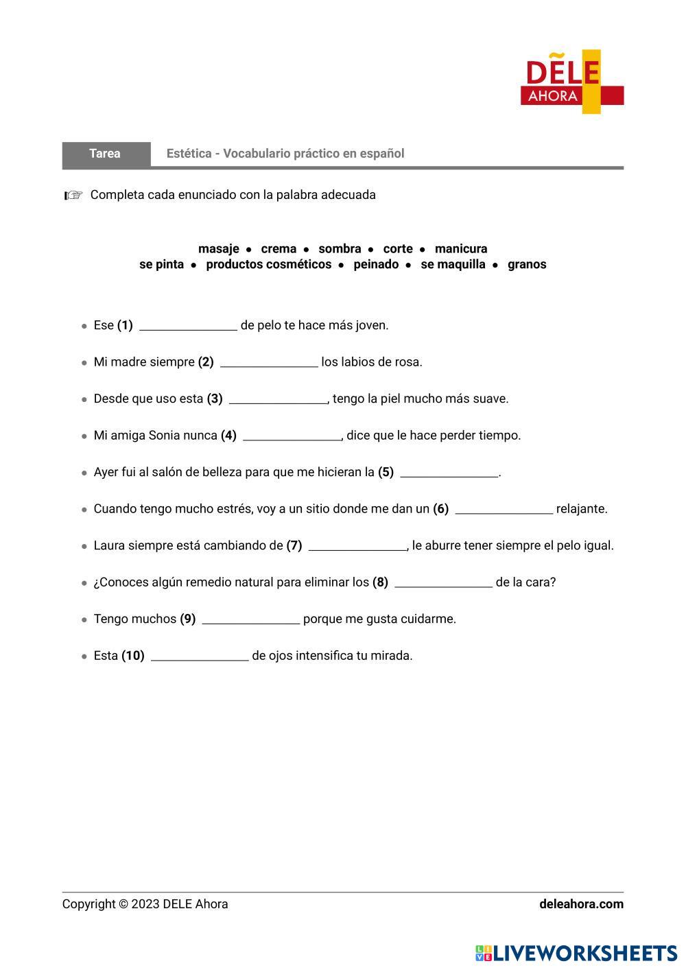 Completa las frases con las palabras a continuación.