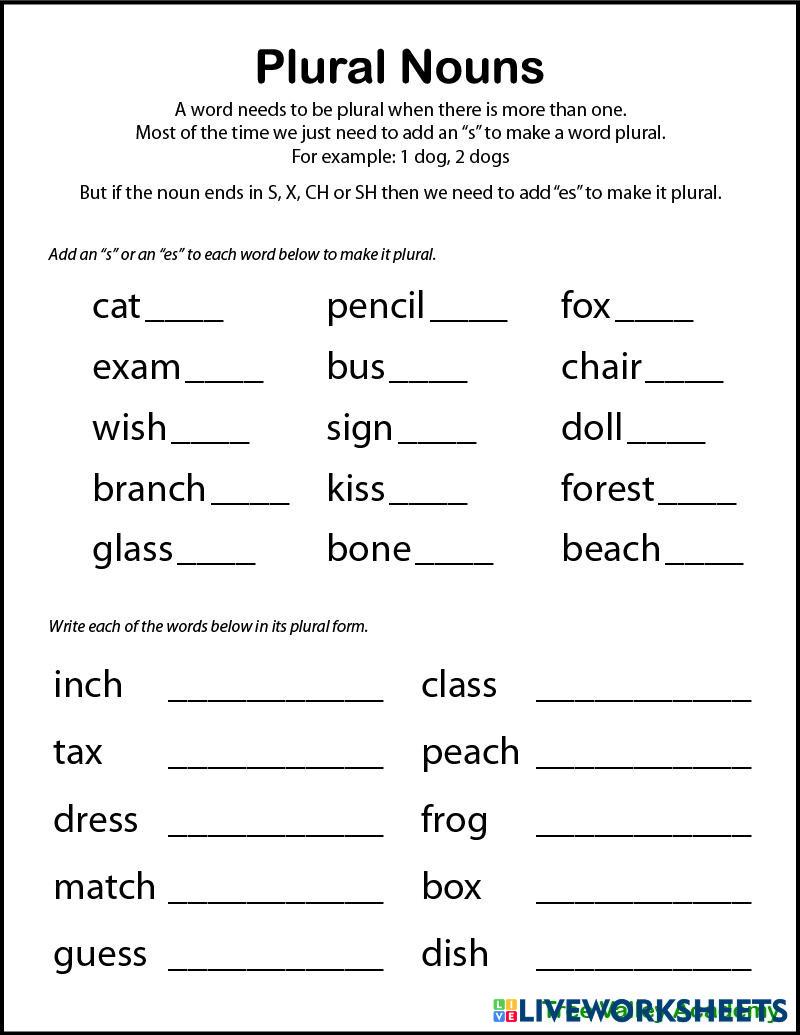 Completa la actividad. Escribe el plural de los siguientes sustantivos.