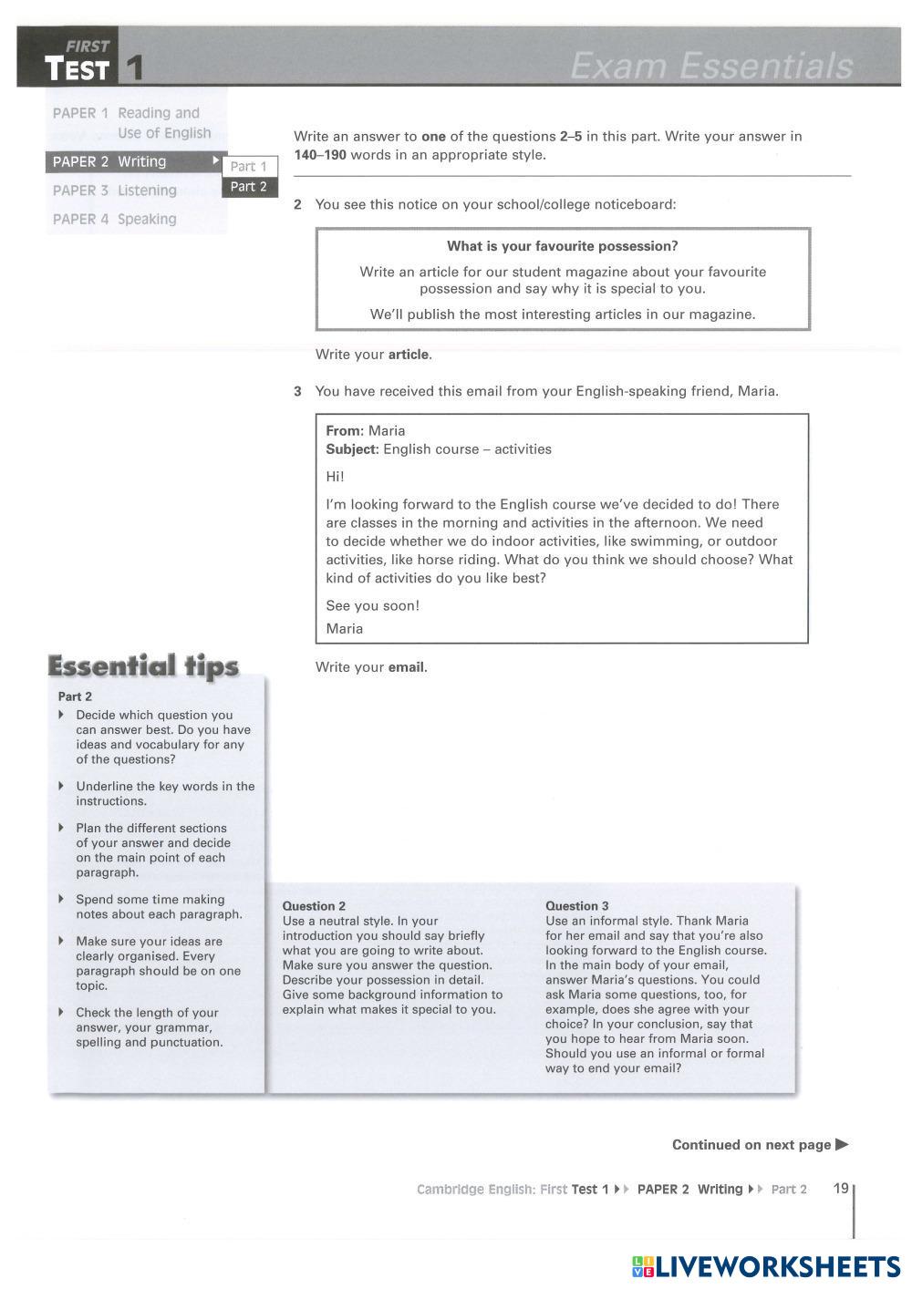Students can review the format of the writing part of the FCE.  Any writing would be done via Word separately.