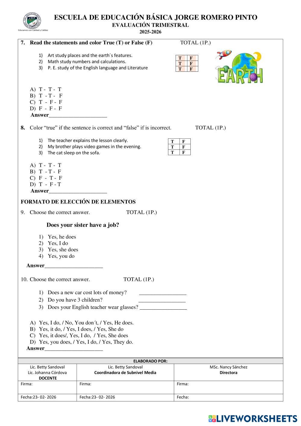 Read and answer the quiz