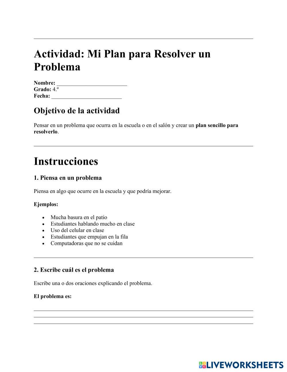 Actividad: Mi Plan para Resolver un Problema