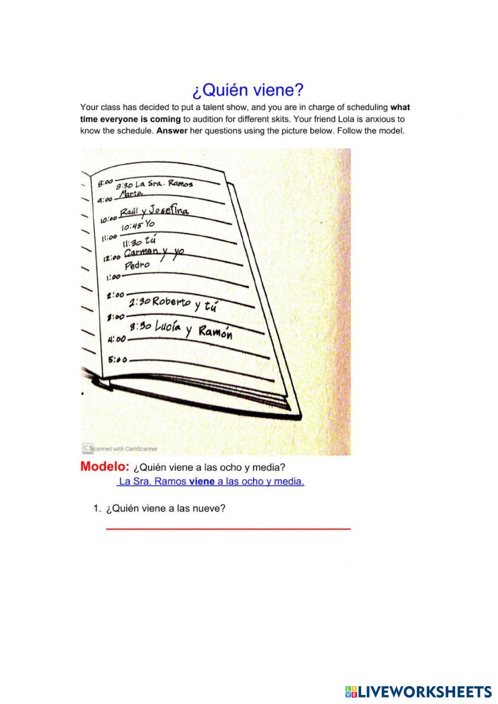 Created bycesar marquez Español como Lengua Extranjera (ELE) Verbos ir y venir Age 3-15 level: BEGINNERS Spanish Author's Instructions My Google Classroom Courses × 0 classes selected (0 students total) Quick Access Select all classes (0 classes) All Classes Loading courses... Cancel Share Share to selected Course __COURSE_NAME__ __STUDENT_NAME__ (__STUDENT_EMAIL__) verbo venir Download Worksheet Validation Check my answers Emails my answers to my teacher Full name Group/level School subject Teacher's email or key code Close Submit Validating worksheet... (12) Your answers have been sent to your teacher. Good luck! OK We encountered an error submitting your answers. Please try again. OK Advertisement | Go Ad Free Created bycesar marquez Español como Lengua Extranjera (ELE) Verbos ir y venir Age 3-15 level: BEGINNERS Spanish Author's Instructions