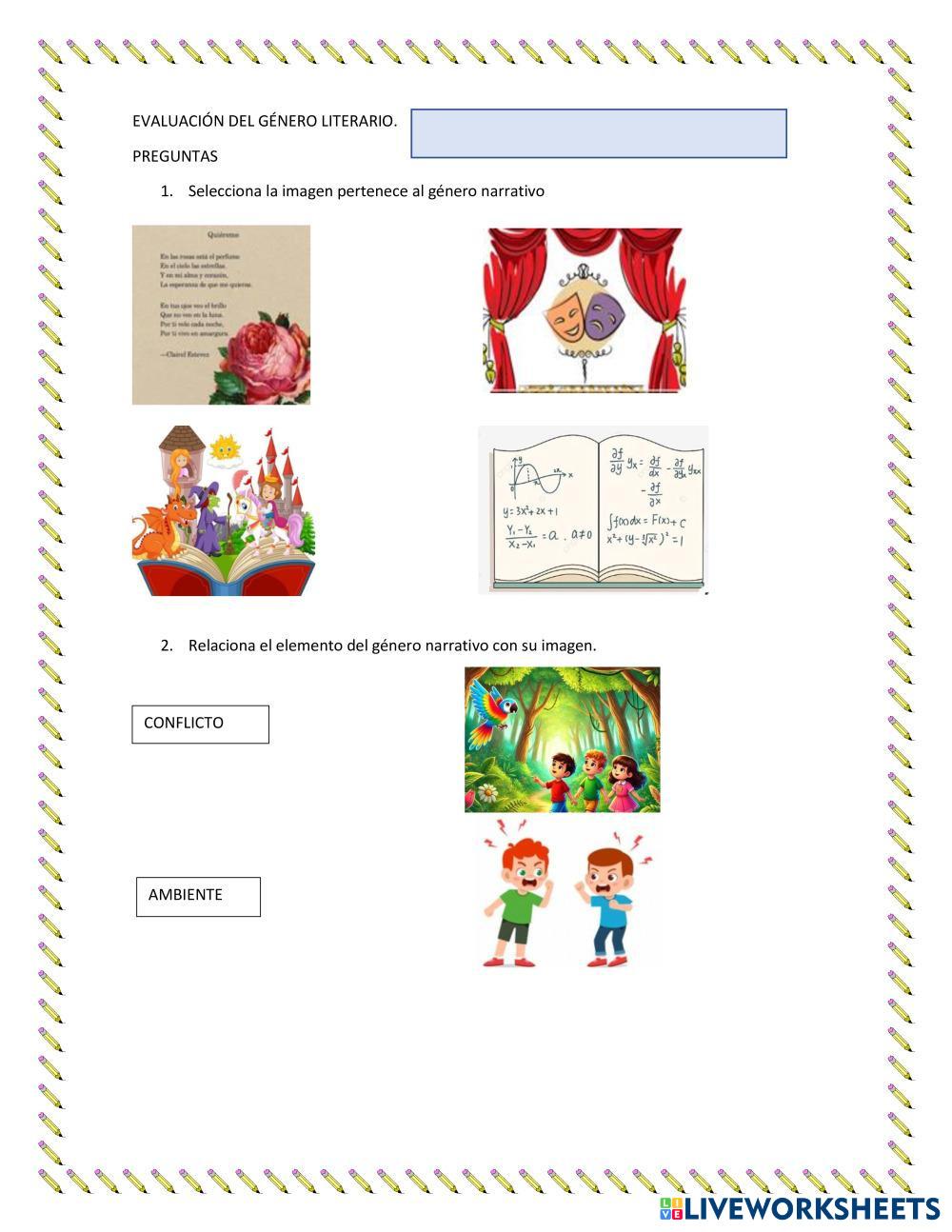 Created byAnalinds Llanos Escorcia Español. La Narración Age 11-16 level: Bachillerato Spanish Author's Instructions My Google Classroom Courses × 0 classes selected (0 students total) Quick Access Select all classes (0 classes) All Classes Loading courses... Cancel Share Share to selected Course __COURSE_NAME__ __STUDENT_NAME__ (__STUDENT_EMAIL__) Género Narrativo Download Worksheet Validation Check my answers Emails my answers to my teacher Full name Group/level School subject Teacher's email or key code Close Submit Validating worksheet... (12) Your answers have been sent to your teacher. Good luck! OK We encountered an error submitting your answers. Please try again. OK Advertisement | Go Ad Free Created byAnalinds Llanos Escorcia Español. La Narración Age 11-16 level: Bachillerato Spanish Author's Instructions