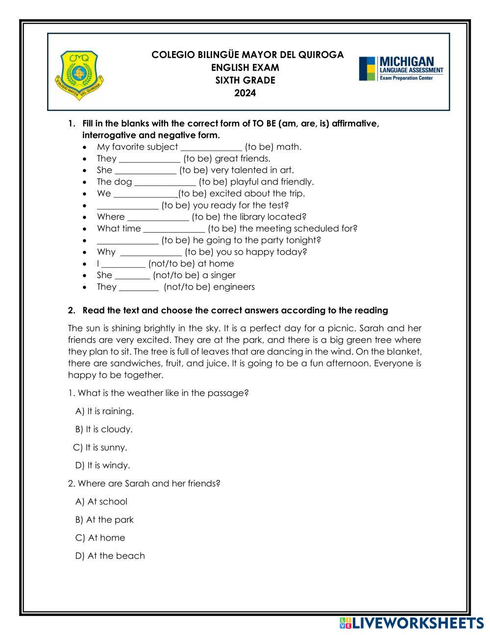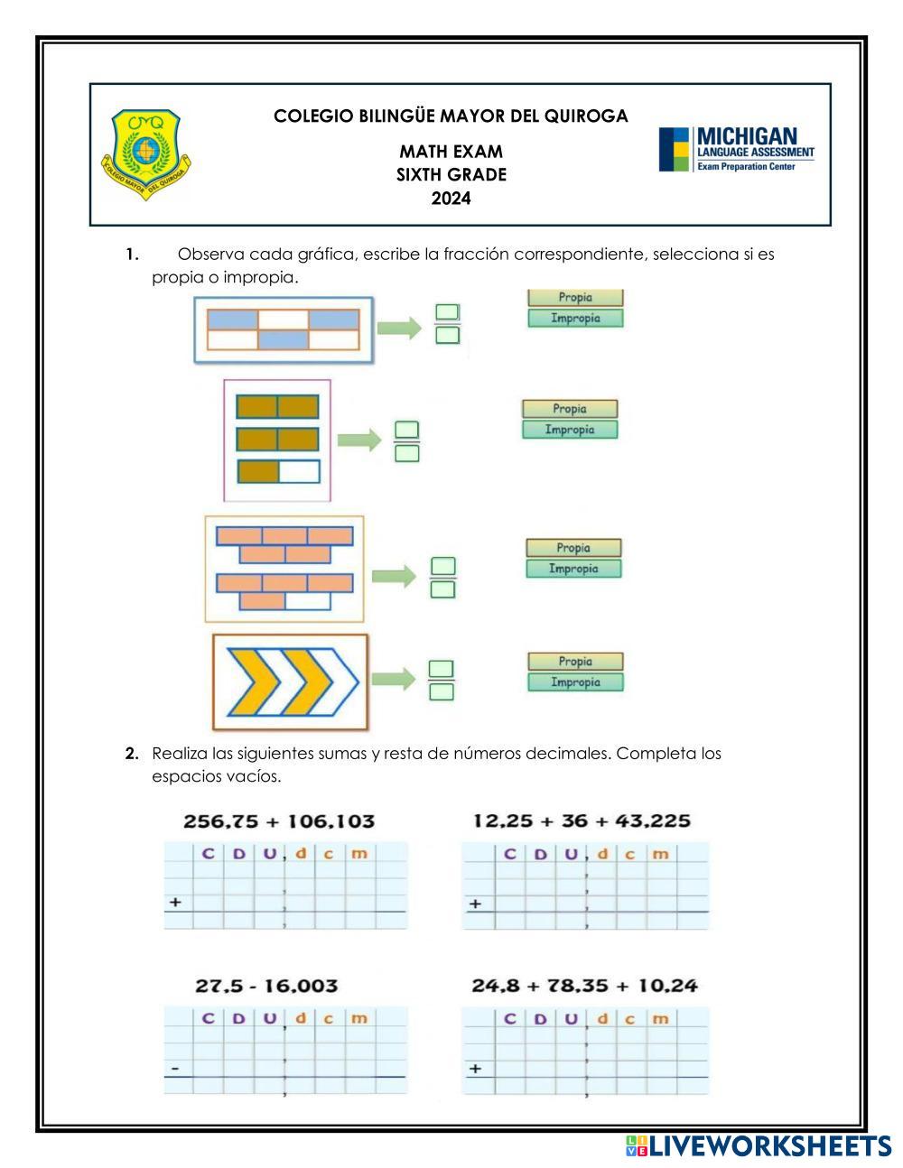 Created byDANIEL FERNANDO TOCARRUNCHO CORONADO Evaluación Evaluación Age 10-15 level: 6 Spanish Author's Instructions My Google Classroom Courses × 0 classes selected (0 students total) Quick Access Select all classes (0 classes) All Classes Loading courses... Cancel Share Share to selected Course __COURSE_NAME__ __STUDENT_NAME__ (__STUDENT_EMAIL__) EXAMENES DE ADMISIÓN 6° Download Worksheet Validation Check my answers Emails my answers to my teacher Full name Group/level School subject Teacher's email or key code Close Submit Validating worksheet... (12) Your answers have been sent to your teacher. Good luck! OK We encountered an error submitting your answers. Please try again. OK Advertisement | Go Ad Free Created byDANIEL FERNANDO TOCARRUNCHO CORONADO Evaluación Evaluación Age 10-15 level: 6 Spanish Author's Instructions