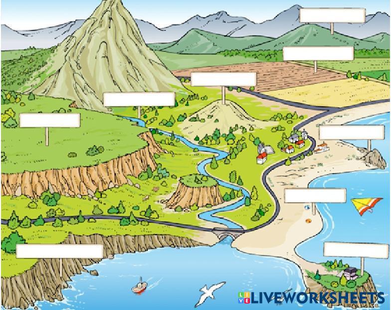 Debes de indicar el nombre de las diferentes formas del relieve en el recuadro correspondiente.