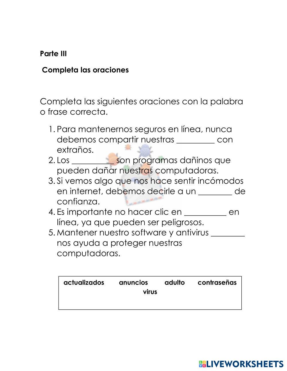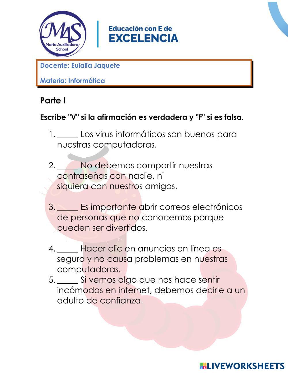 El estudiante reconoce conceptos relacionados con virus, malware, cómo mantenernos seguros en internet.