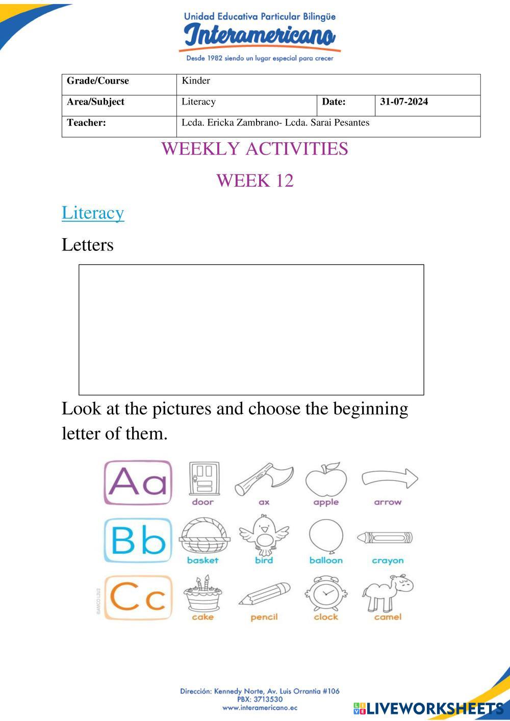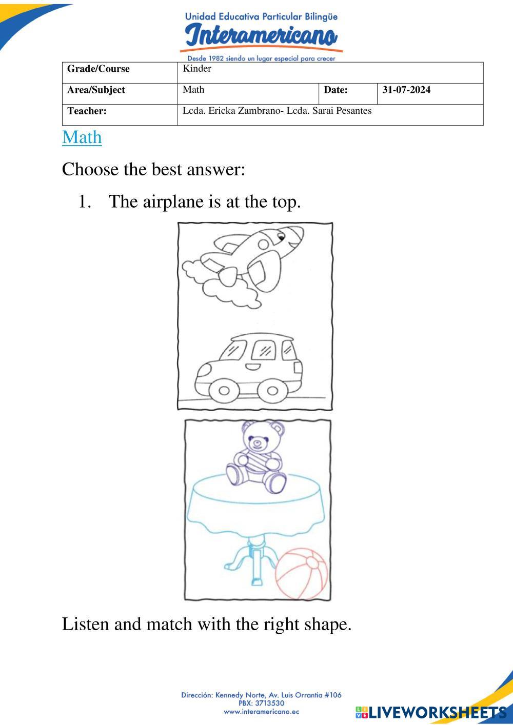 Created byUSER99 Language arts REVIEW Age 4-9 level: KINDER Spanish Author's Instructions My Google Classroom Courses × 0 classes selected (0 students total) Quick Access Select all classes (0 classes) All Classes Loading courses... Cancel Share Share to selected Course __COURSE_NAME__ __STUDENT_NAME__ (__STUDENT_EMAIL__) LIVEWORKSHEET KINDER Download Worksheet Validation Check my answers Emails my answers to my teacher Full name Group/level School subject Teacher's email or key code Close Submit Validating worksheet... (12) Your answers have been sent to your teacher. Good luck! OK We encountered an error submitting your answers. Please try again. OK Advertisement | Go Ad Free Created byUSER99 Language arts REVIEW Age 4-9 level: KINDER Spanish Author's Instructions