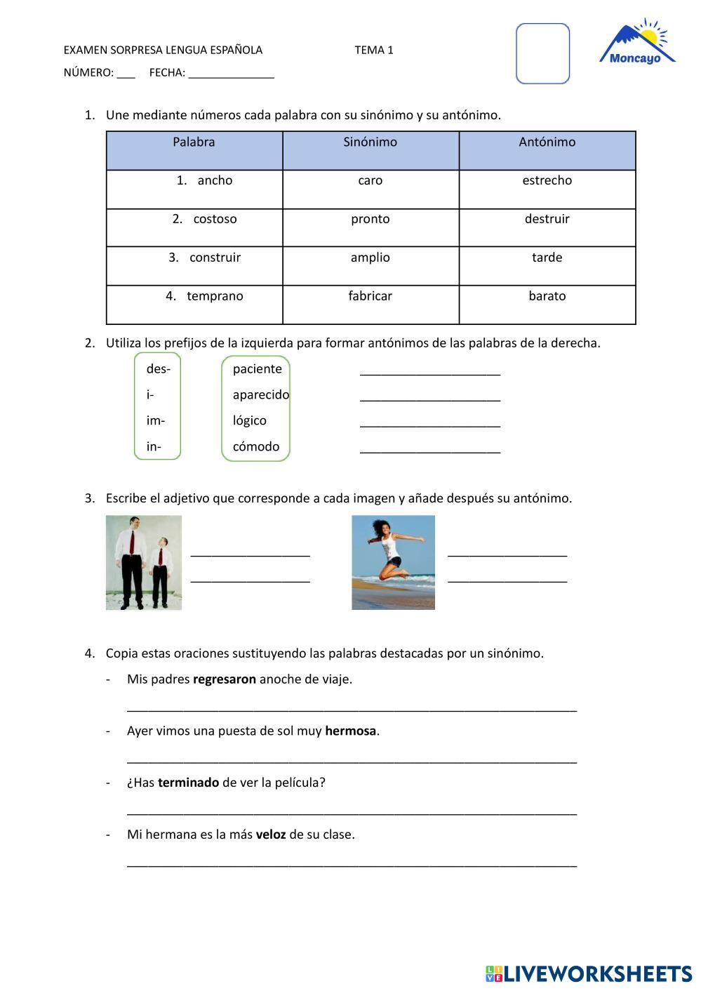 Created by Pablocaceres Lengua Castellana Sinonimos y antonimos Age 9-8 level: 5º Primaria Spanish Author's Instructions My Google Classroom Courses × 0 classes selected (0 students total) Quick Access Select all classes (0 classes) All Classes Loading courses... Cancel Share Share to selected Course __COURSE_NAME__ __STUDENT_NAME__ (__STUDENT_EMAIL__) Ficha Tema 1 Lengua Download Worksheet Validation Check my answers Emails my answers to my teacher Full name Group/level School subject Teacher's email or key code Close Submit Validating worksheet... (12) Your answers have been sent to your teacher. Good luck! OK We encountered an error submitting your answers. Please try again. OK Advertisement | Go Ad Free Created by Pablocaceres Lengua Castellana Sinonimos y antonimos Age 9-8 level: 5º Primaria Spanish Author's Instructions