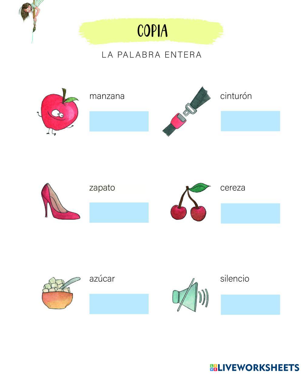 Created bySalvatella Lengua Castellana Palabras monosílabas, bisílabas y trisílabas. Age 5-9 level: easy Spanish Author's Instructions My Google Classroom Courses × 0 classes selected (0 students total) Quick Access Select all classes (0 classes) All Classes Loading courses... Cancel Share Share to selected Course __COURSE_NAME__ __STUDENT_NAME__ (__STUDENT_EMAIL__) Sílabas y Palabras 5_trisílabos 5 parte 2 Download Worksheet Validation Check my answers Emails my answers to my teacher Full name Group/level School subject Teacher's email or key code Close Submit Validating worksheet... (12) Your answers have been sent to your teacher. Good luck! OK We encountered an error submitting your answers. Please try again. OK Advertisement | Go Ad Free Created bySalvatella Lengua Castellana Palabras monosílabas, bisílabas y trisílabas. Age 5-9 level: easy Spanish Author's Instructions
