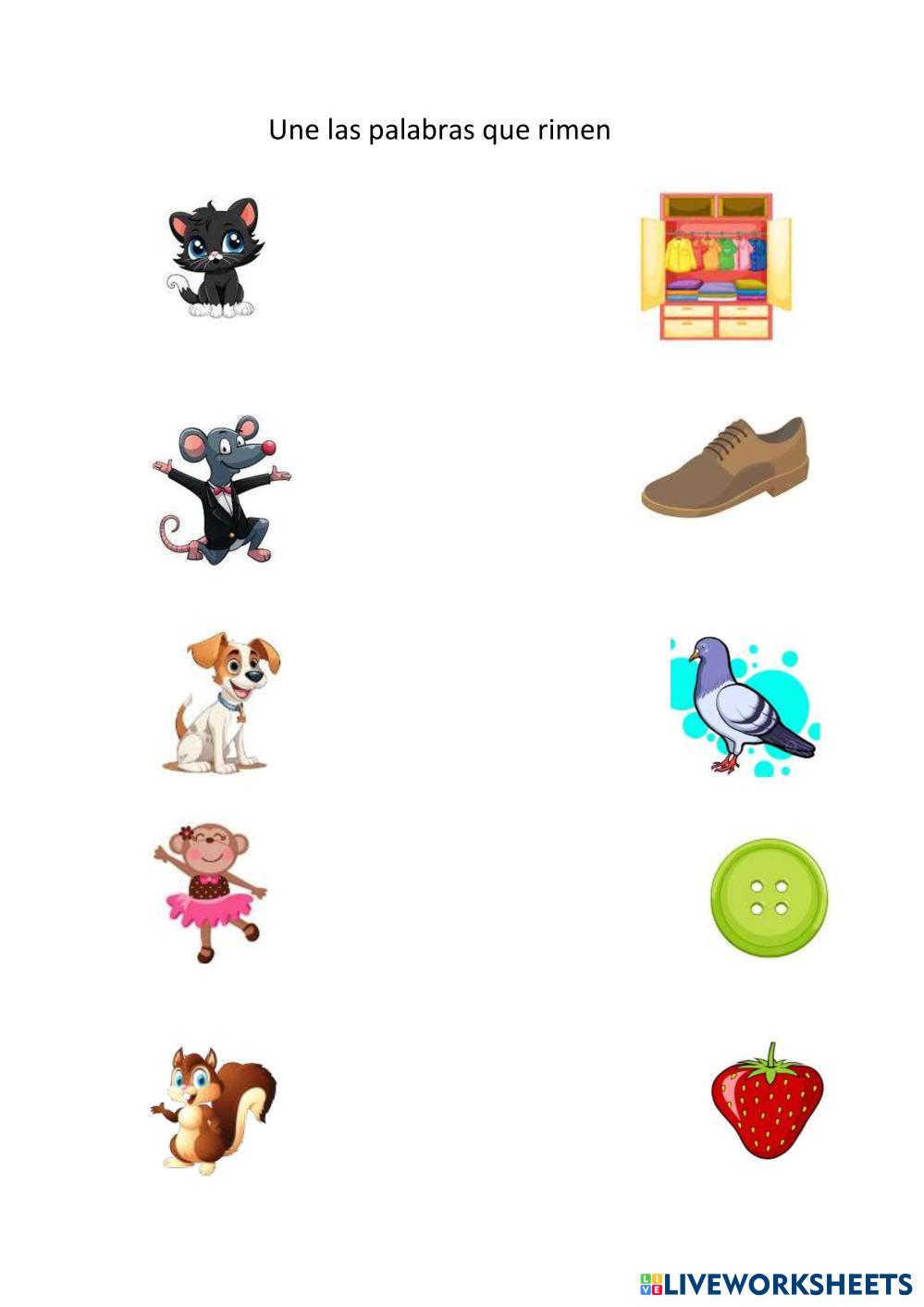 Created byPilar Vargas Lengua Castellana Las rimas Age 5-6 level: 1 Spanish Author's Instructions UNIR PALABRAS CON LA RIMA My Google Classroom Courses × 0 classes selected (0 students total) Quick Access Select all classes (0 classes) All Classes Loading courses... Cancel Share Share to selected Course __COURSE_NAME__ __STUDENT_NAME__ (__STUDENT_EMAIL__) Estimulacion de lenguaje Download Worksheet Validation Check my answers Emails my answers to my teacher Full name Group/level School subject Teacher's email or key code Close Submit Validating worksheet... (12) Your answers have been sent to your teacher. Good luck! OK We encountered an error submitting your answers. Please try again. OK Advertisement | Go Ad Free Created byPilar Vargas Lengua Castellana Las rimas Age 5-6 level: 1 Spanish Author's Instructions UNIR PALABRAS CON LA RIMA