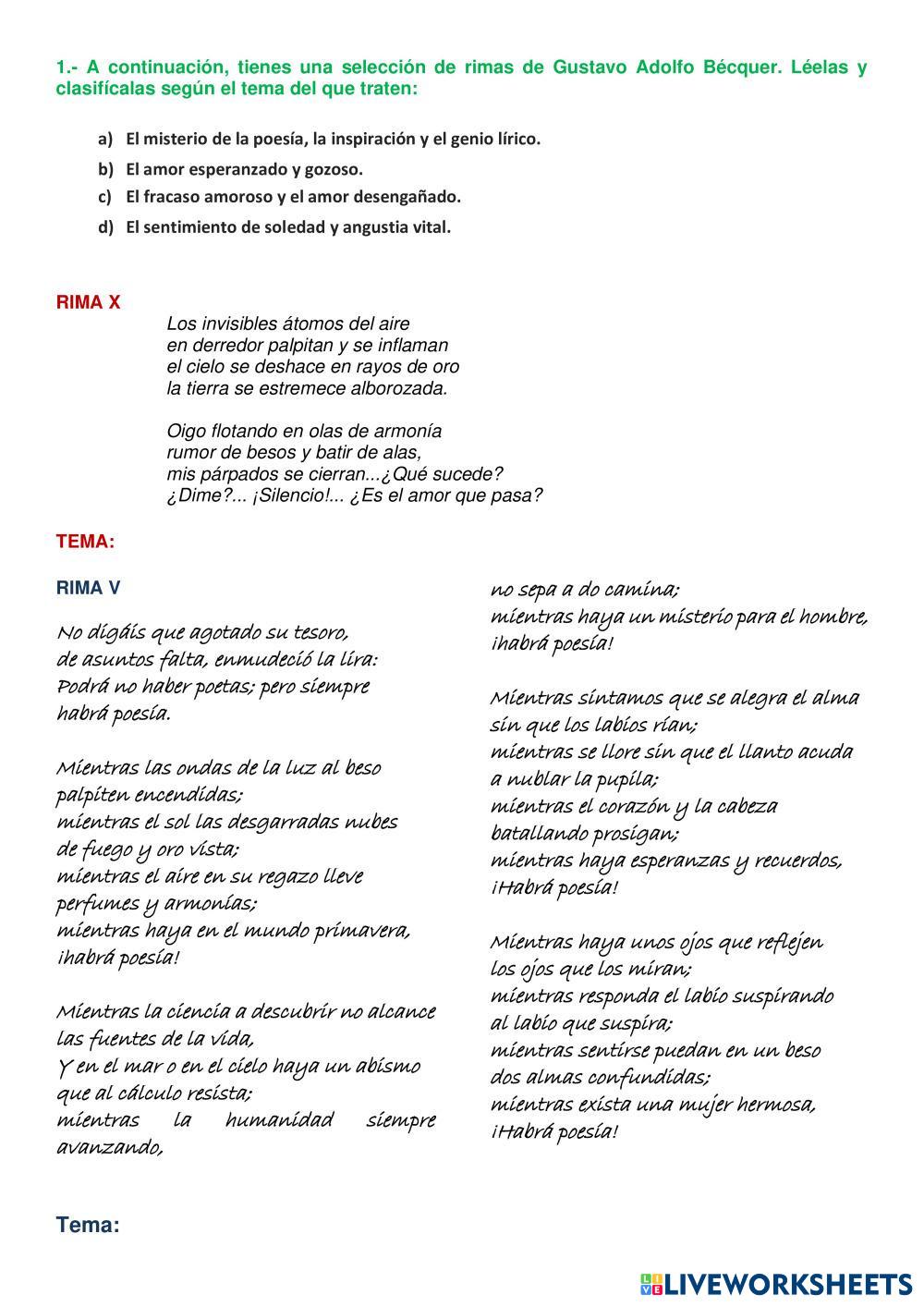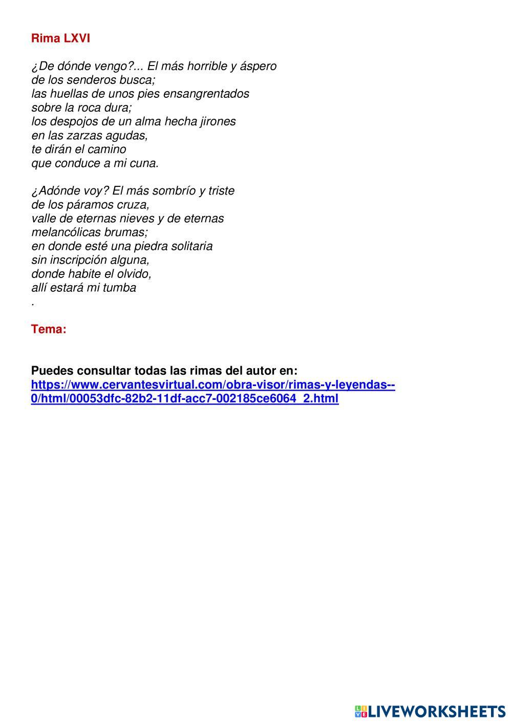 Actividad de lectura y análisis de algunas rimas de Bécquer