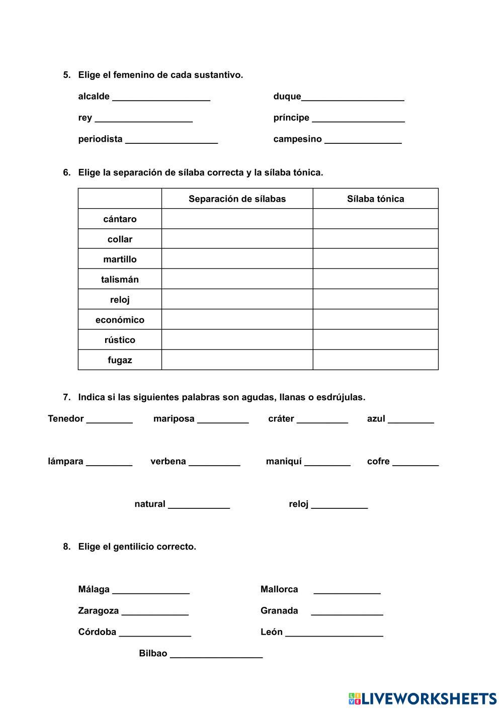 Created byAntonia Cladera Lengua Castellana Gramática y vocabulario Age 10+ level: 5 Spanish Author's Instructions My Google Classroom Courses × 0 classes selected (0 students total) Quick Access Select all classes (0 classes) All Classes Loading courses... Cancel Share Share to selected Course __COURSE_NAME__ __STUDENT_NAME__ (__STUDENT_EMAIL__) EXAMEN CASTELLANO SA03 Download Worksheet Validation Check my answers Emails my answers to my teacher Full name Group/level School subject Teacher's email or key code Close Submit Validating worksheet... (12) Your answers have been sent to your teacher. Good luck! OK We encountered an error submitting your answers. Please try again. OK Advertisement | Go Ad Free Created byAntonia Cladera Lengua Castellana Gramática y vocabulario Age 10+ level: 5 Spanish Author's Instructions