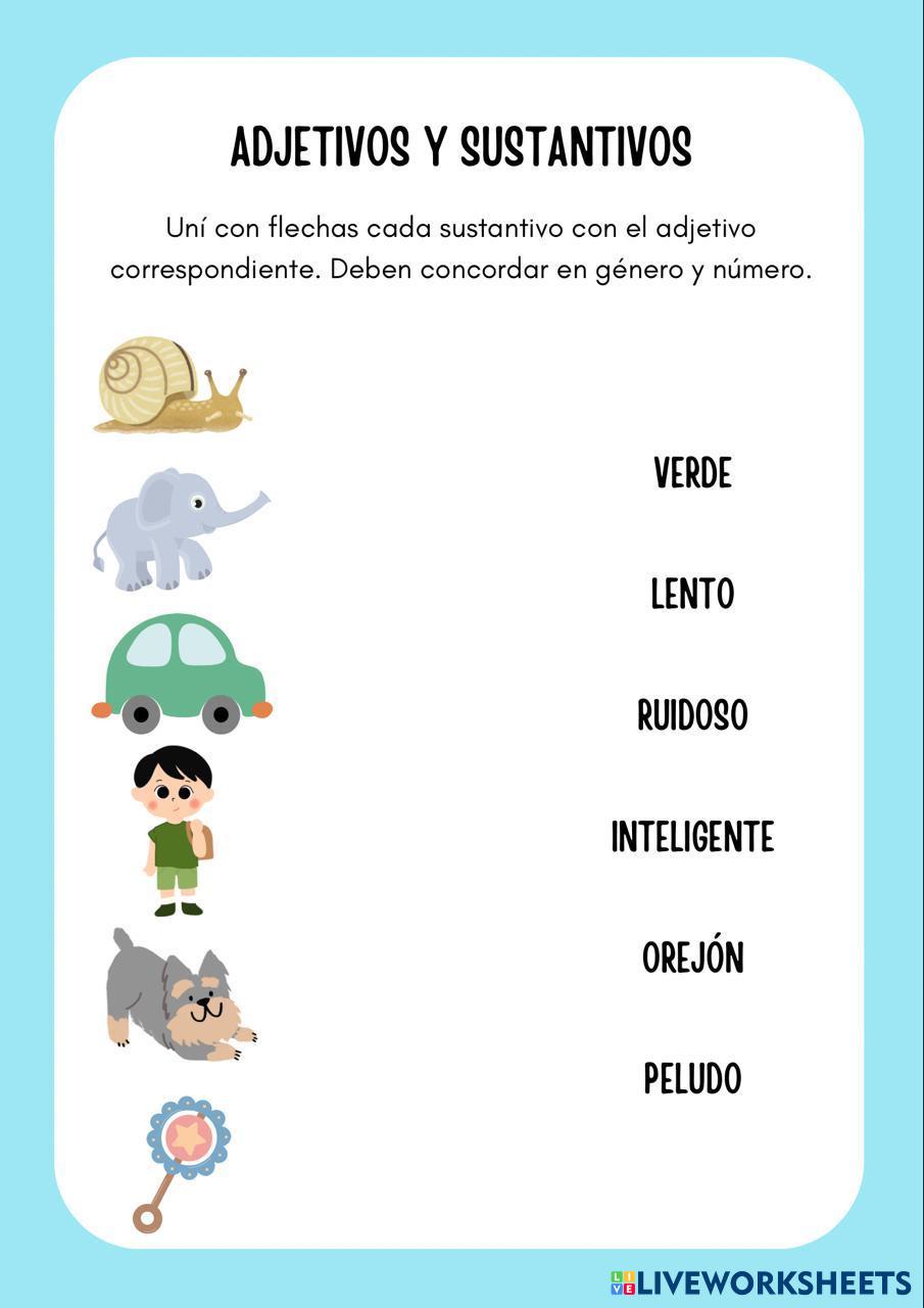 Created bymartinavignoli Lengua Castellana Adjetivos y sustantivos Age 8-12 level: Tercer grado Spanish Author's Instructions My Google Classroom Courses × 0 classes selected (0 students total) Quick Access Select all classes (0 classes) All Classes Loading courses... Cancel Share Share to selected Course __COURSE_NAME__ __STUDENT_NAME__ (__STUDENT_EMAIL__) Ajetivos y sustantivos Download Worksheet Validation Check my answers Emails my answers to my teacher Full name Group/level School subject Teacher's email or key code Close Submit Validating worksheet... (12) Your answers have been sent to your teacher. Good luck! OK We encountered an error submitting your answers. Please try again. OK Advertisement | Go Ad Free Created bymartinavignoli Lengua Castellana Adjetivos y sustantivos Age 8-12 level: Tercer grado Spanish Author's Instructions