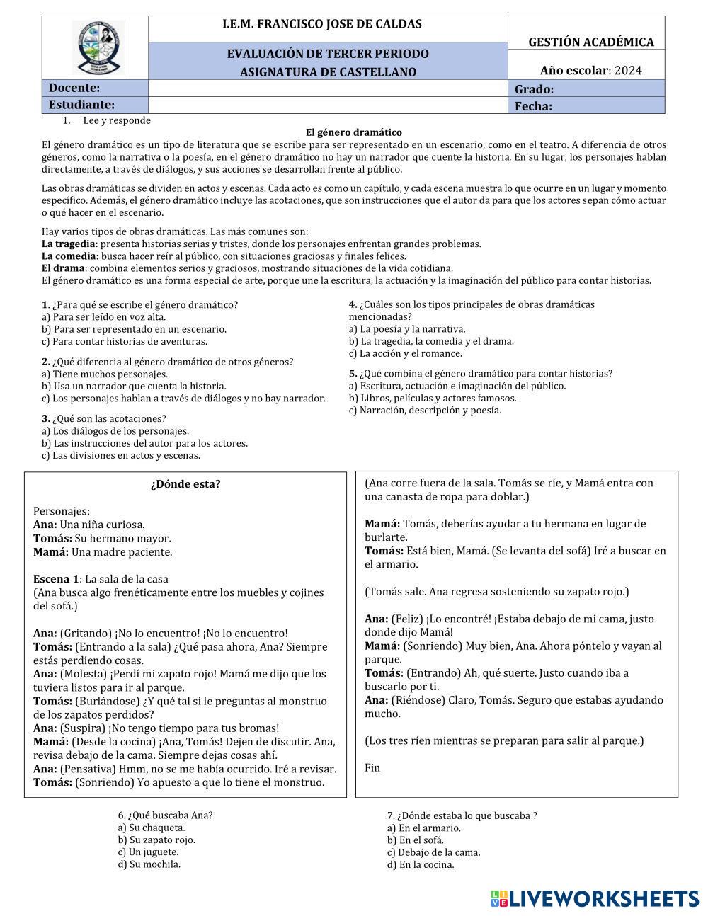 Evaluación tercer periodo