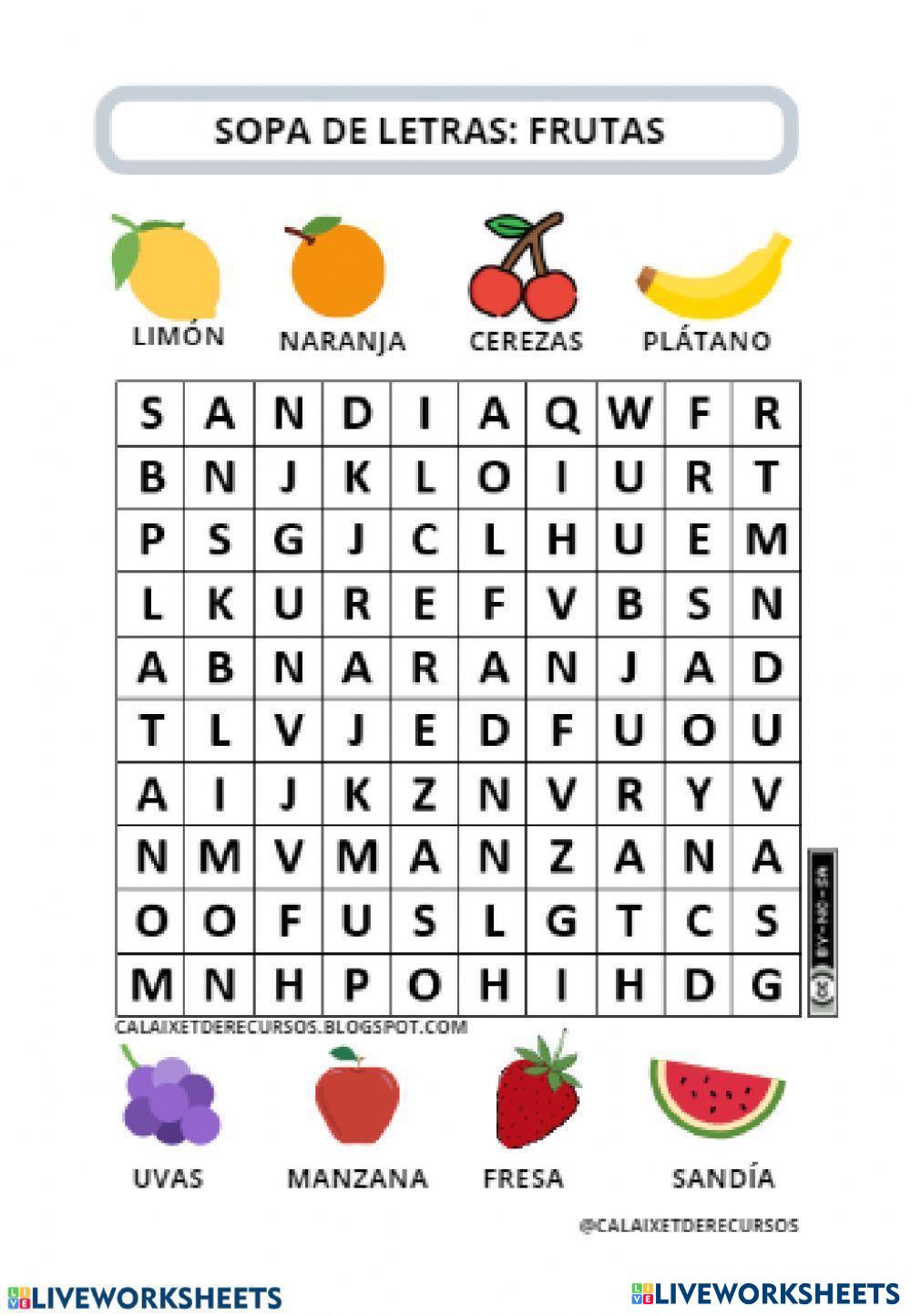 sopa de letras de frutas