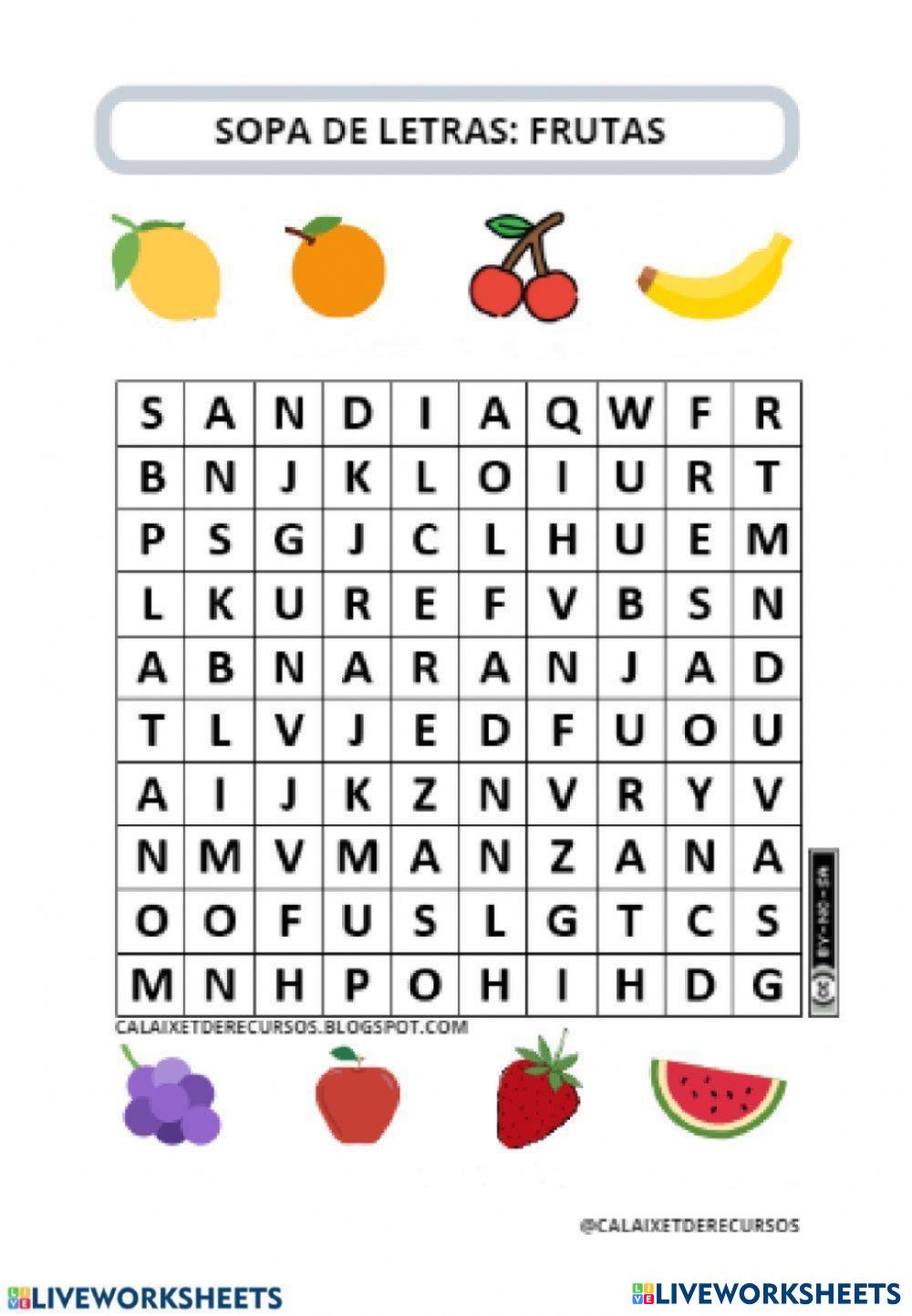 SOPA DE LETRAS DE FRUTAS
