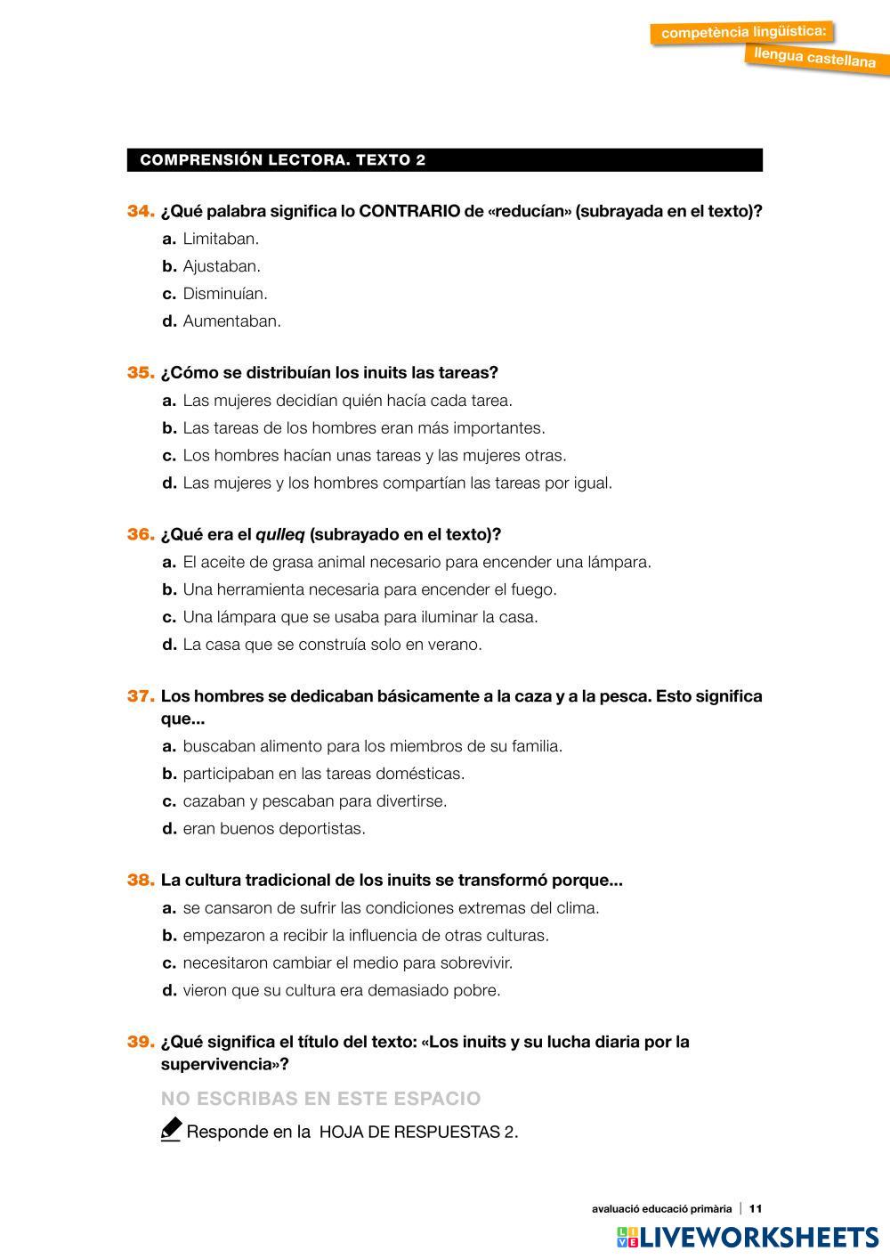 Created by xescanil Lengua Castellana Comprensión lectora Age 11-15 level: 6º Spanish Author's Instructions My Google Classroom Courses × 0 classes selected (0 students total) Quick Access Select all classes (0 classes) All Classes Loading courses... Cancel Share Share to selected Course __COURSE_NAME__ __STUDENT_NAME__ (__STUDENT_EMAIL__) Comprensión lectora 2 Competencias básicas 2019 Download Worksheet Validation Check my answers Emails my answers to my teacher Full name Group/level School subject Teacher's email or key code Close Submit Validating worksheet... (12) Your answers have been sent to your teacher. Good luck! OK We encountered an error submitting your answers. Please try again. OK Advertisement | Go Ad Free Created by xescanil Lengua Castellana Comprensión lectora Age 11-15 level: 6º Spanish Author's Instructions