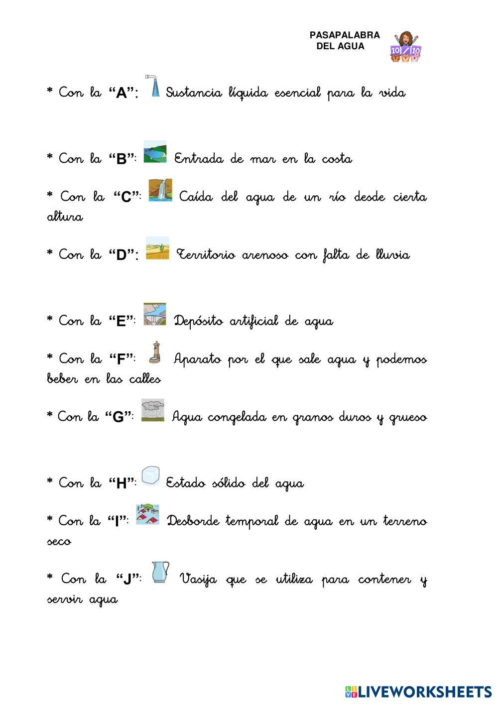 Created by Cabanas Lengua Castellana Comprensión lectora Age 7-10 level: PRIMERO DE PRIMARIA Spanish Author's Instructions My Google Classroom Courses × 0 classes selected (0 students total) Quick Access Select all classes (0 classes) All Classes Loading courses... Cancel Share Share to selected Course __COURSE_NAME__ __STUDENT_NAME__ (__STUDENT_EMAIL__) PASAPALABRA PICTOGRAMAS DÍA DEL AGUA Download Worksheet Validation Check my answers Emails my answers to my teacher Full name Group/level School subject Teacher's email or key code Close Submit Validating worksheet... (12) Your answers have been sent to your teacher. Good luck! OK We encountered an error submitting your answers. Please try again. OK Advertisement | Go Ad Free Created by Cabanas Lengua Castellana Comprensión lectora Age 7-10 level: PRIMERO DE PRIMARIA Spanish Author's Instructions