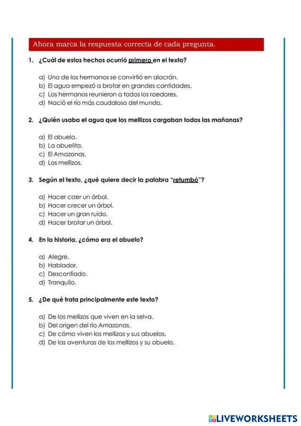 Created byGualberto Centeno C. Lengua española Lengua española Age 8+ level: CUARTO PRIMA.... Spanish Author's Instructions My Google Classroom Courses × 0 classes selected (0 students total) Quick Access Select all classes (0 classes) All Classes Loading courses... Cancel Share Share to selected Course __COURSE_NAME__ __STUDENT_NAME__ (__STUDENT_EMAIL__) COMUNICACION 4to lecturas ECE Download Worksheet Validation Check my answers Emails my answers to my teacher Full name Group/level School subject Teacher's email or key code Close Submit Validating worksheet... (12) Your answers have been sent to your teacher. Good luck! OK We encountered an error submitting your answers. Please try again. OK Advertisement | Go Ad Free Created byGualberto Centeno C. Lengua española Lengua española Age 8+ level: CUARTO PRIMA.... Spanish Author's Instructions