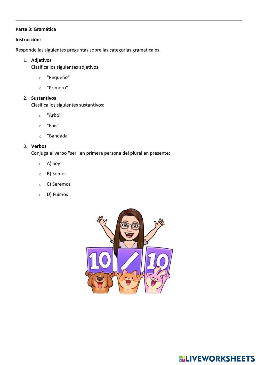 Created byRocío Belén Suarez Lengua Comprensión Age 11+ level: Primaria Spanish Author's Instructions My Google Classroom Courses × 0 classes selected (0 students total) Quick Access Select all classes (0 classes) All Classes Loading courses... Cancel Share Share to selected Course __COURSE_NAME__ __STUDENT_NAME__ (__STUDENT_EMAIL__) INGRESO Download Worksheet Validation Check my answers Emails my answers to my teacher Full name Group/level School subject Teacher's email or key code Close Submit Validating worksheet... (12) Your answers have been sent to your teacher. Good luck! OK We encountered an error submitting your answers. Please try again. OK Advertisement | Go Ad Free Created byRocío Belén Suarez Lengua Comprensión Age 11+ level: Primaria Spanish Author's Instructions