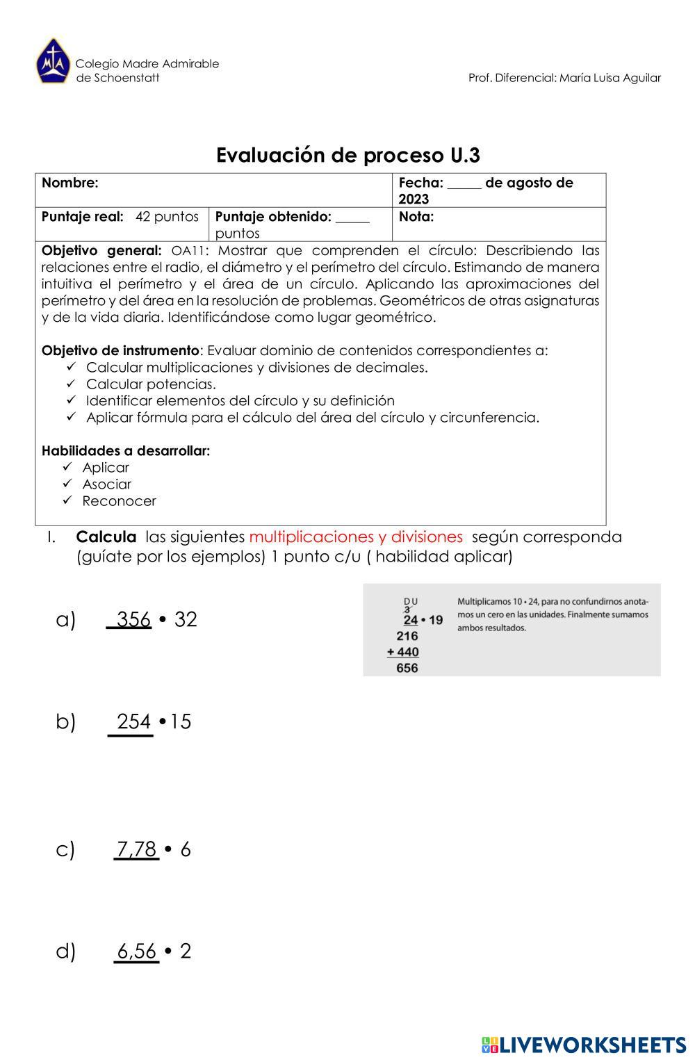 - Aplicar fórmula para el cálculo del área del círculo y circunferencia.