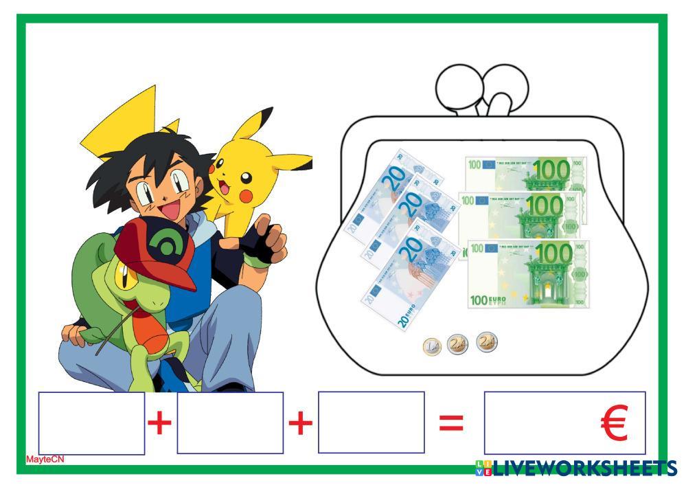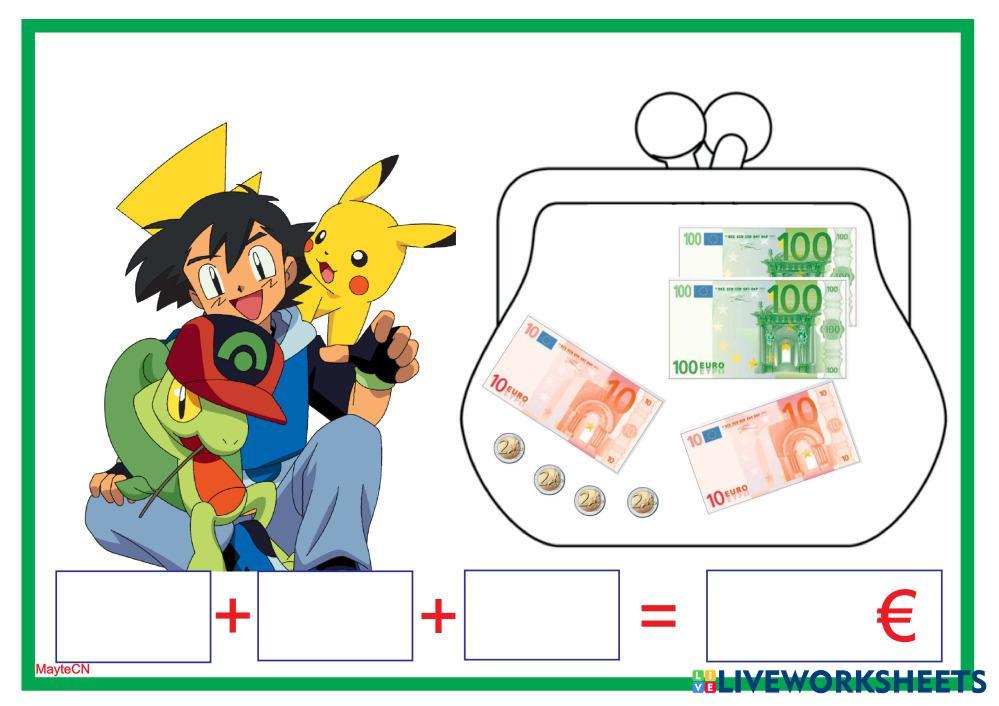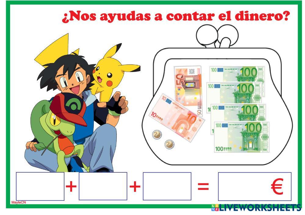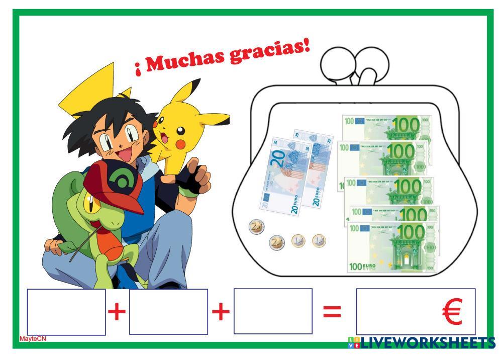 SUMA LOS EUROS COMENZANDO POR LOS BILLETES DE MÁS VALOR.