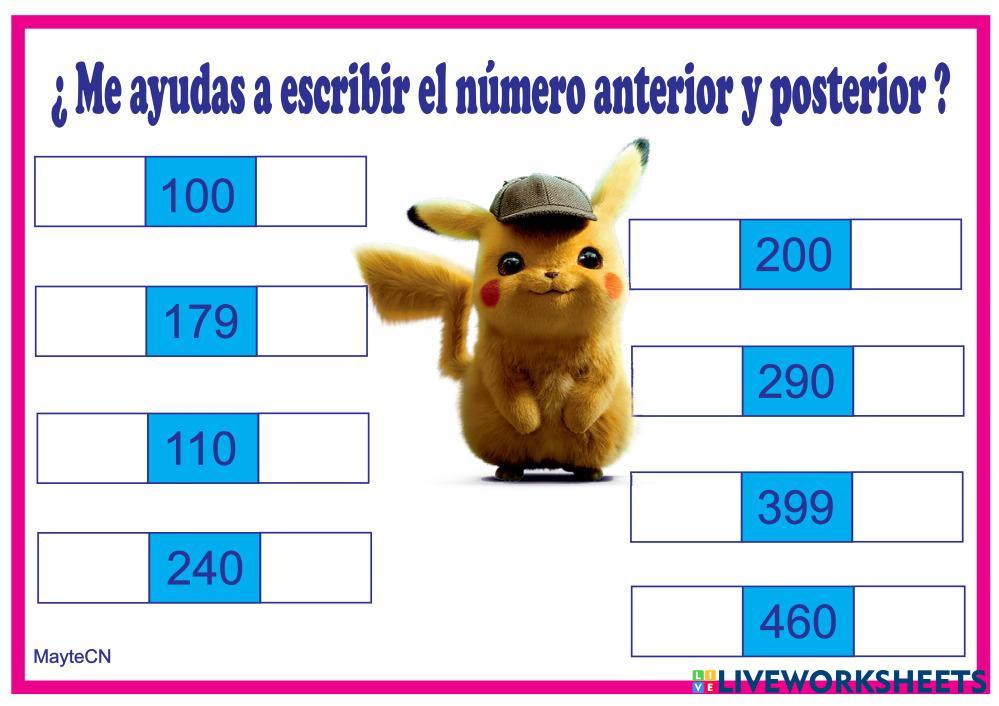 Escribe el número anterior y posterior