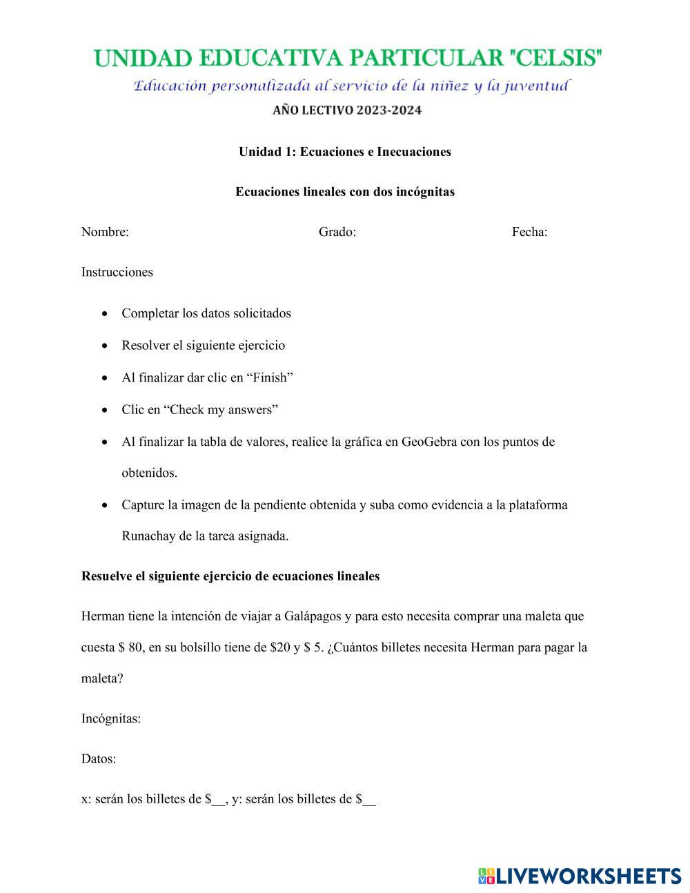 Created bySolange Chandi Matemáticas Ejercicios de matemática Age 15+ level: 1ero de Bachillerato Spanish Author's Instructions My Google Classroom Courses × 0 classes selected (0 students total) Quick Access Select all classes (0 classes) All Classes Loading courses... Cancel Share Share to selected Course __COURSE_NAME__ __STUDENT_NAME__ (__STUDENT_EMAIL__) Solange Chandi Download Worksheet Validation Check my answers Emails my answers to my teacher Full name Group/level School subject Teacher's email or key code Close Submit Validating worksheet... (12) Your answers have been sent to your teacher. Good luck! OK We encountered an error submitting your answers. Please try again. OK Advertisement | Go Ad Free Created bySolange Chandi Matemáticas Ejercicios de matemática Age 15+ level: 1ero de Bachillerato Spanish Author's Instructions