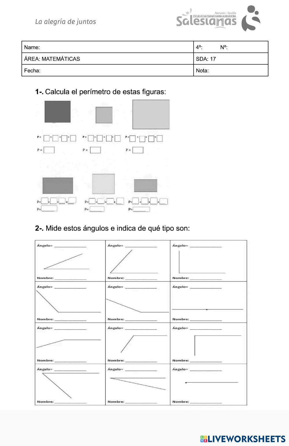 Created byAncff Matemáticas El perimetro Age 9-13 level: 4º Spanish Author's Instructions My Google Classroom Courses × 0 classes selected (0 students total) Quick Access Select all classes (0 classes) All Classes Loading courses... Cancel Share Share to selected Course __COURSE_NAME__ __STUDENT_NAME__ (__STUDENT_EMAIL__) Examen matematicas unidad 17 edebe liveworksheets Download Worksheet Validation Check my answers Emails my answers to my teacher Full name Group/level School subject Teacher's email or key code Close Submit Validating worksheet... (12) Your answers have been sent to your teacher. Good luck! OK We encountered an error submitting your answers. Please try again. OK Advertisement | Go Ad Free Created byAncff Matemáticas El perimetro Age 9-13 level: 4º Spanish Author's Instructions