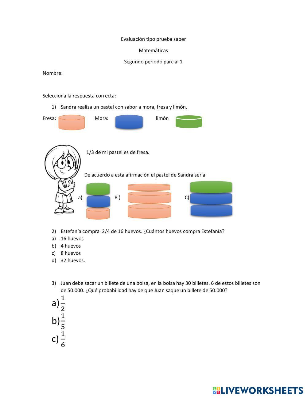 Created byJorge Armando Galvis Matemáticas Fracciones Age 9-18 level: fácil Spanish Author's Instructions My Google Classroom Courses × 0 classes selected (0 students total) Quick Access Select all classes (0 classes) All Classes Loading courses... Cancel Share Share to selected Course __COURSE_NAME__ __STUDENT_NAME__ (__STUDENT_EMAIL__) Evaluación fracciones Download Worksheet Validation Check my answers Emails my answers to my teacher Full name Group/level School subject Teacher's email or key code Close Submit Validating worksheet... (12) Your answers have been sent to your teacher. Good luck! OK We encountered an error submitting your answers. Please try again. OK Advertisement | Go Ad Free Created byJorge Armando Galvis Matemáticas Fracciones Age 9-18 level: fácil Spanish Author's Instructions