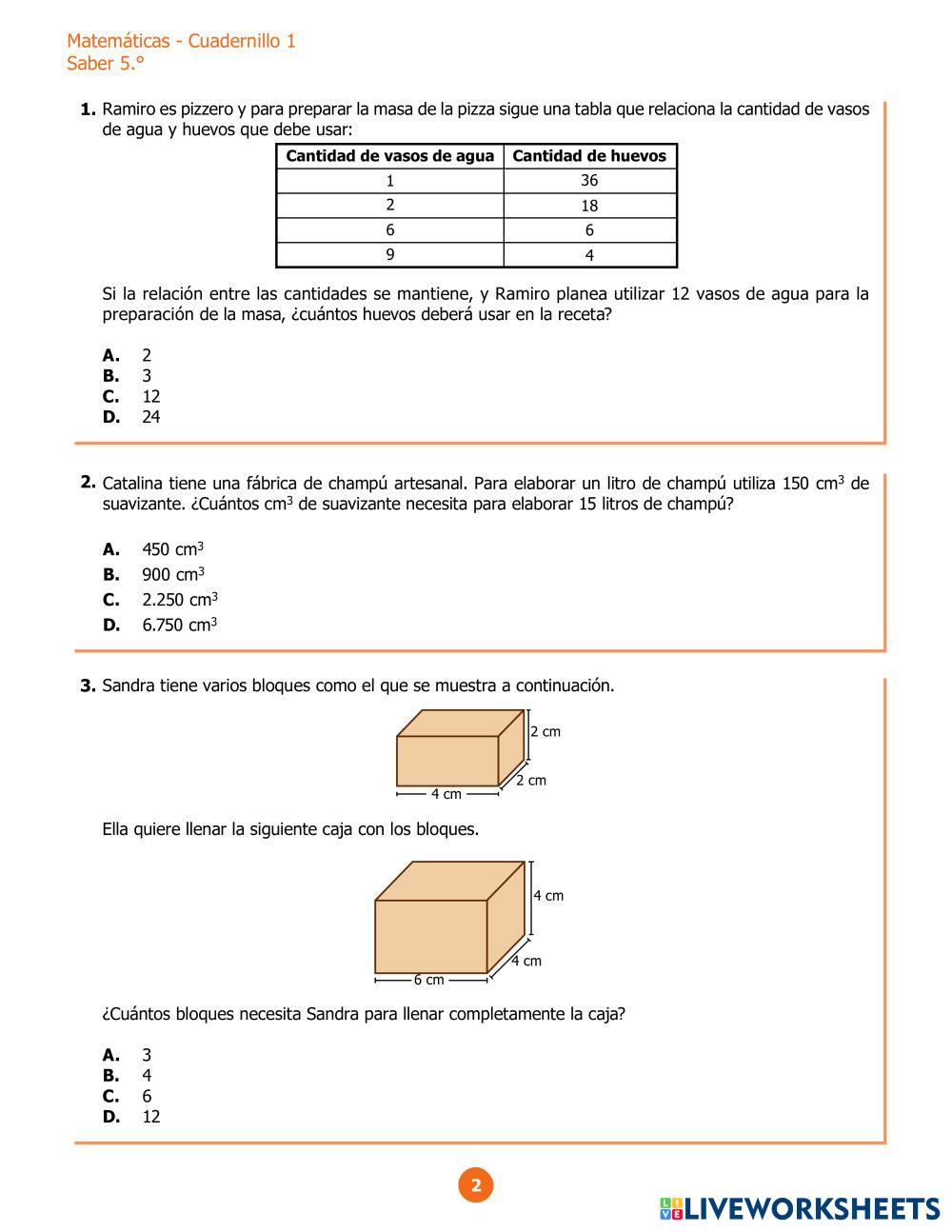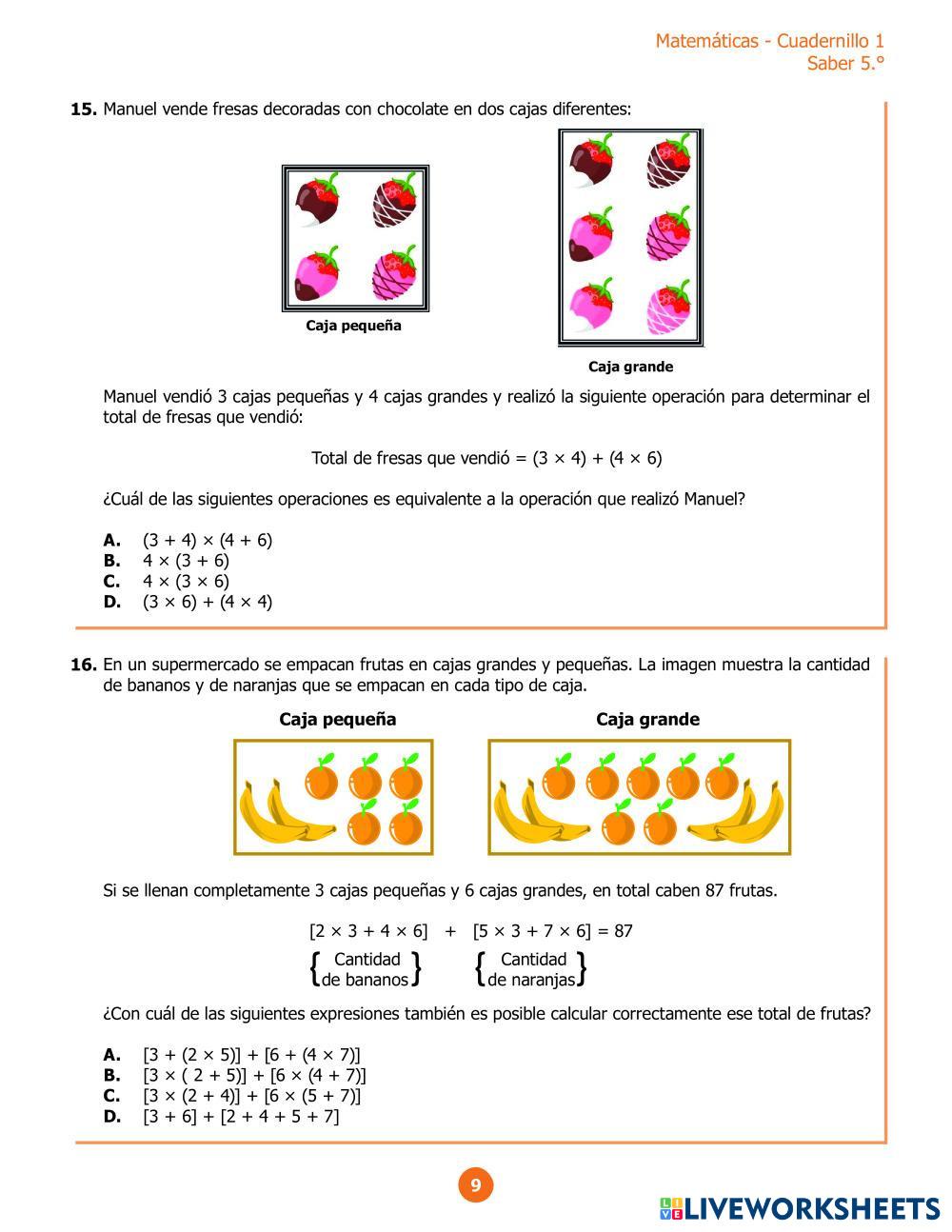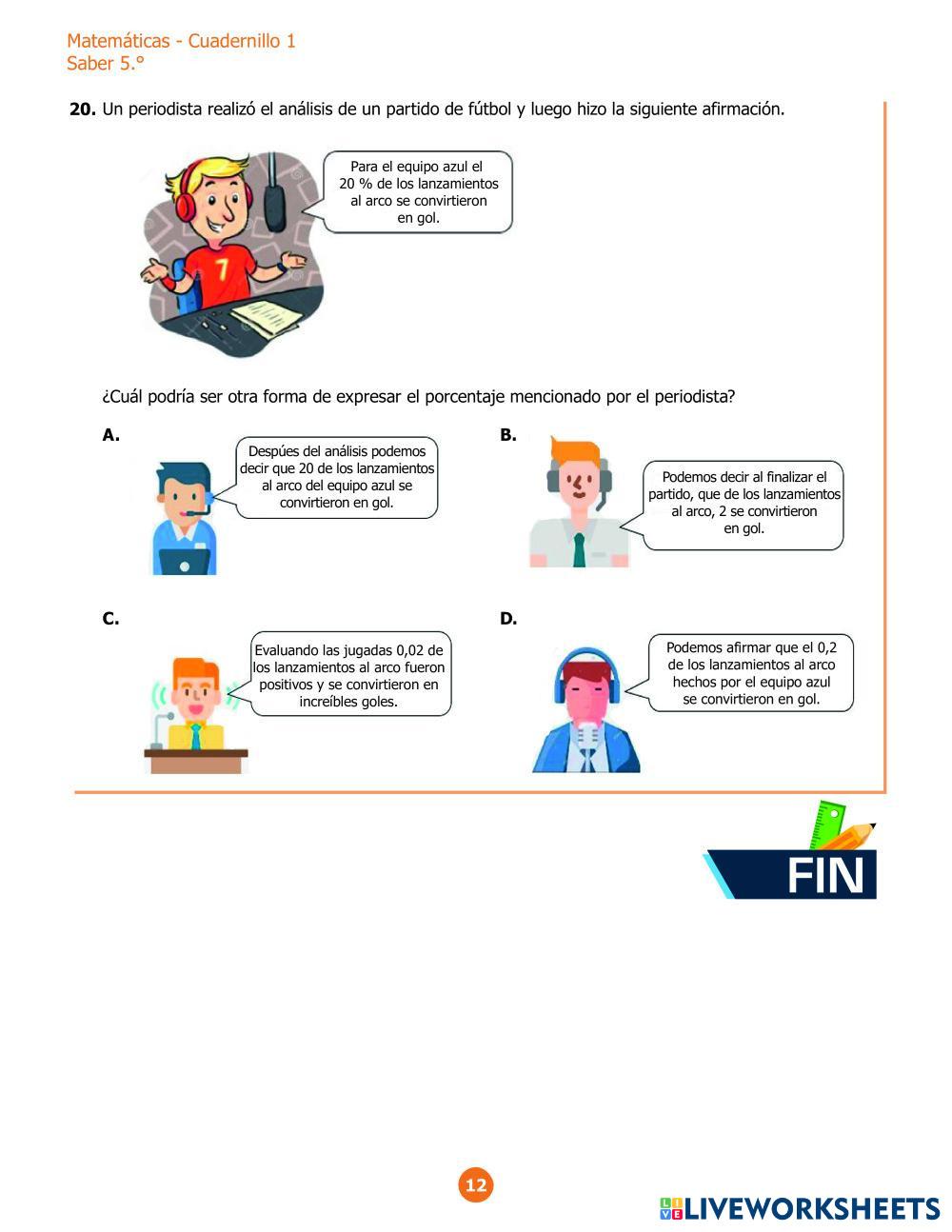 Created byJorge Armando Galvis Matemáticas Análisis de problemas Age 10-15 level: Medio Spanish Author's Instructions My Google Classroom Courses × 0 classes selected (0 students total) Quick Access Select all classes (0 classes) All Classes Loading courses... Cancel Share Share to selected Course __COURSE_NAME__ __STUDENT_NAME__ (__STUDENT_EMAIL__) Prueba Evaluar para avanzar 1 Download Worksheet Validation Check my answers Emails my answers to my teacher Full name Group/level School subject Teacher's email or key code Close Submit Validating worksheet... (12) Your answers have been sent to your teacher. Good luck! OK We encountered an error submitting your answers. Please try again. OK Advertisement | Go Ad Free Created byJorge Armando Galvis Matemáticas Análisis de problemas Age 10-15 level: Medio Spanish Author's Instructions