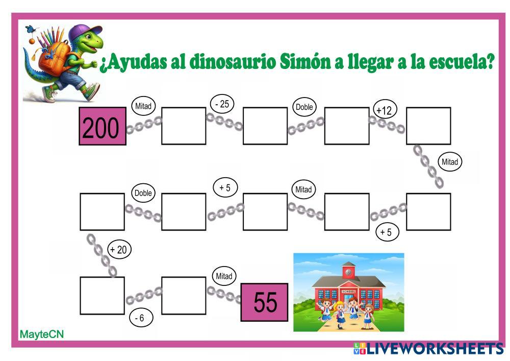 Created byLuz Mayte Correa Nazco Matemáticas Cálculo mental. Doble, mitad, sumas y restas Age 7-15 level: 3º Spanish Author's Instructions My Google Classroom Courses × 0 classes selected (0 students total) Quick Access Select all classes (0 classes) All Classes Loading courses... Cancel Share Share to selected Course __COURSE_NAME__ __STUDENT_NAME__ (__STUDENT_EMAIL__) Cálculo mental encadenado 4 Download Worksheet Validation Check my answers Emails my answers to my teacher Full name Group/level School subject Teacher's email or key code Close Submit Validating worksheet... (12) Your answers have been sent to your teacher. Good luck! OK We encountered an error submitting your answers. Please try again. OK Advertisement | Go Ad Free Created byLuz Mayte Correa Nazco Matemáticas Cálculo mental. Doble, mitad, sumas y restas Age 7-15 level: 3º Spanish Author's Instructions