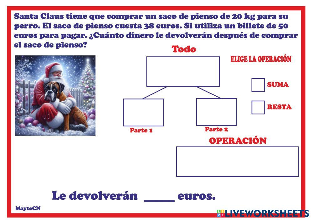 Created byLuz Mayte Correa Nazco Matemáticas Resolución de problemas Age 7-15 level: 3º Spanish Author's Instructions My Google Classroom Courses × 0 classes selected (0 students total) Quick Access Select all classes (0 classes) All Classes Loading courses... Cancel Share Share to selected Course __COURSE_NAME__ __STUDENT_NAME__ (__STUDENT_EMAIL__) Problema navideño 3. Diagrama: Partes-Todo Download Worksheet Validation Check my answers Emails my answers to my teacher Full name Group/level School subject Teacher's email or key code Close Submit Validating worksheet... (12) Your answers have been sent to your teacher. Good luck! OK We encountered an error submitting your answers. Please try again. OK Advertisement | Go Ad Free Created byLuz Mayte Correa Nazco Matemáticas Resolución de problemas Age 7-15 level: 3º Spanish Author's Instructions
